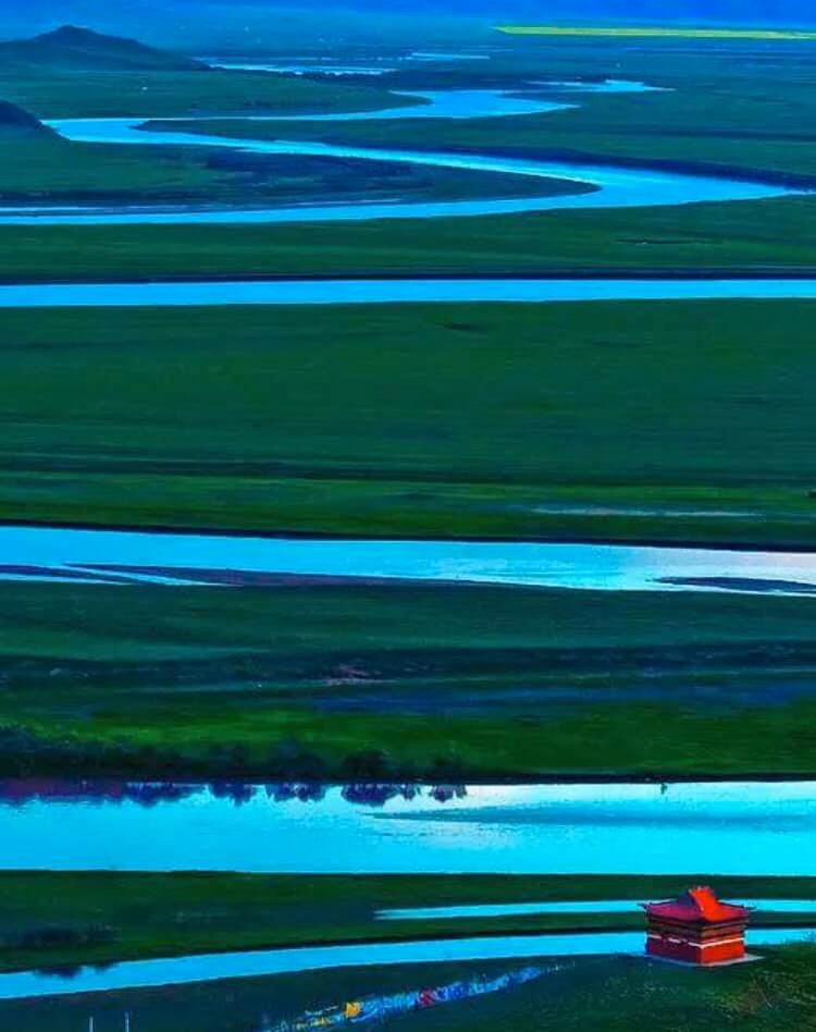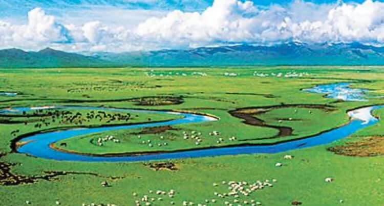黄河は、白河と合流して清らかな水が美しいS字型の曲線を描きながら、湿地面積100万ヘクタールの若爾蓋湿原に流れていく。展望台からの美しい眺めは黄河の全景が広がり、情景が目に焼き付くことでしょう。