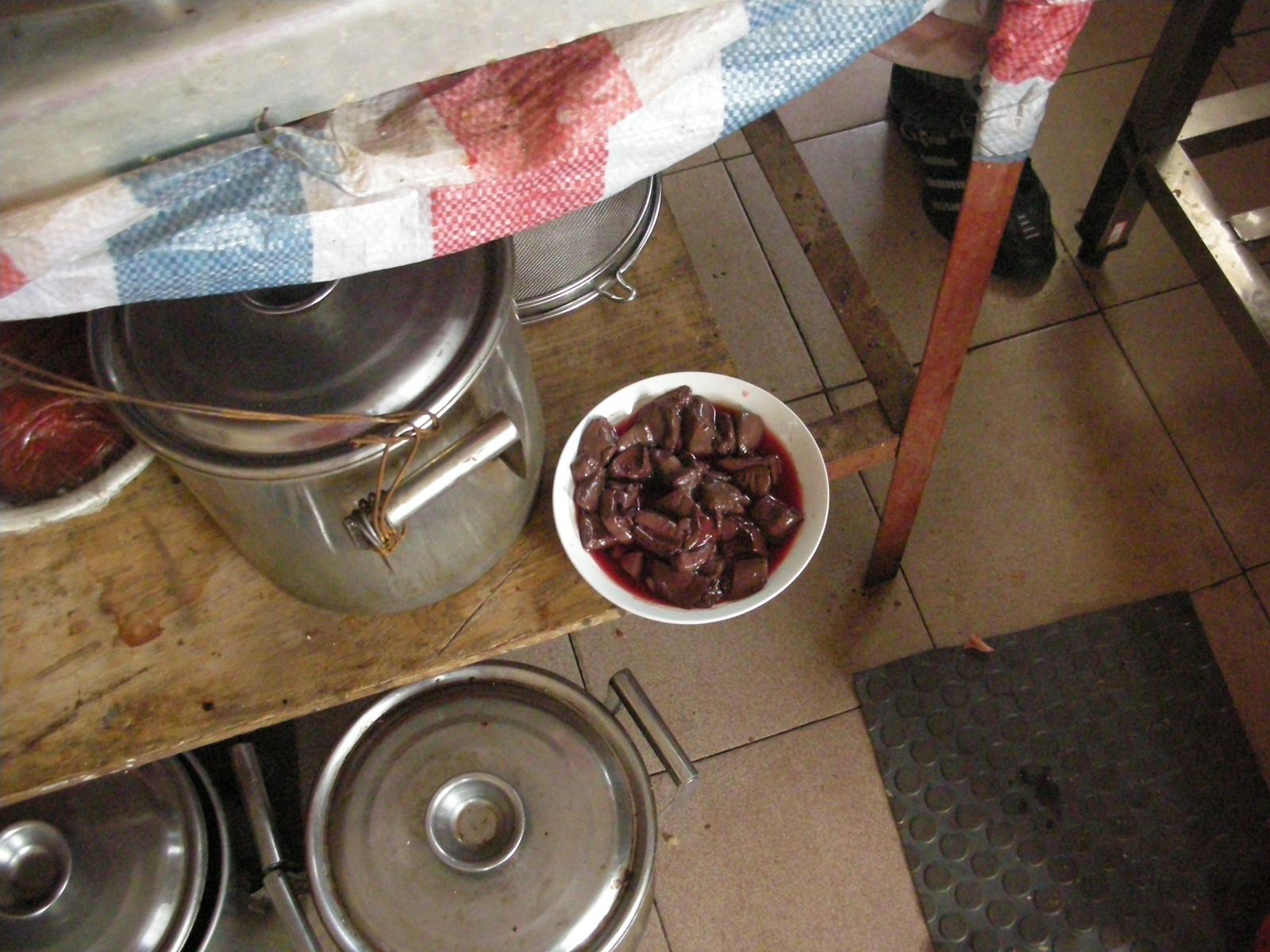 (鶏肉の血スープ。これは飲んでないので味はわかりません。)