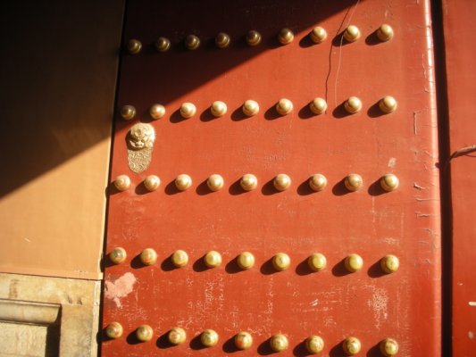 (紫禁城午門の扉。溥儀が城から出た3つある午門の出入口の内の真ん中(皇帝専用の出入口))
