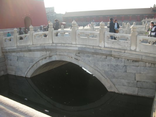 ますば 紫禁城の南門から入ります。 南=「午(うま)」の方角にあることから、午門(ごもん)と呼ばれていました。「コの字型」にせり出した形が特徴で官吏たちが早朝に集まり、皇帝に拝謁した場所です。 映画「ラスト・エンペラー」では溥儀が城外に出ようと「Open the door !」と門扉を叩くシーンとなったところです。また映画の冒頭で亡くなる前の西太后からの命令で、幼い溥儀(ふぎ)が紫禁城に呼ばれ、薄暗い明け方に乳母と一緒にお輿に乗ってこの午門を入っていくシーンでも出てきました。