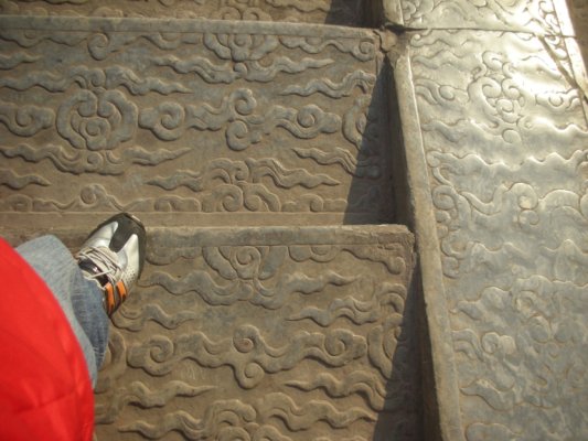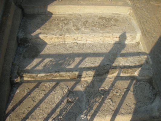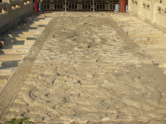 (大和門の皇帝が通る階段。龍の彫刻。)