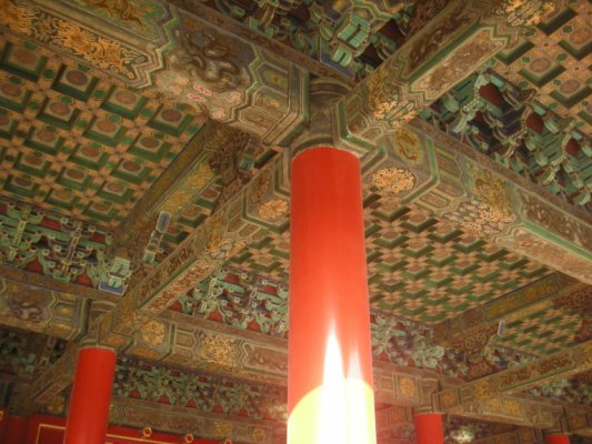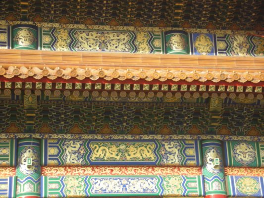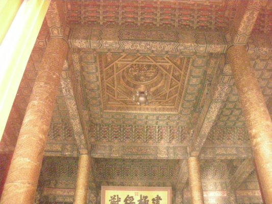 (大和殿の王座の天井。映画「ラストエンペラ」では、西太后が亡くなる直前に、天井に吊ってある黒真珠の下までベッドを移動するシーンがありました。)