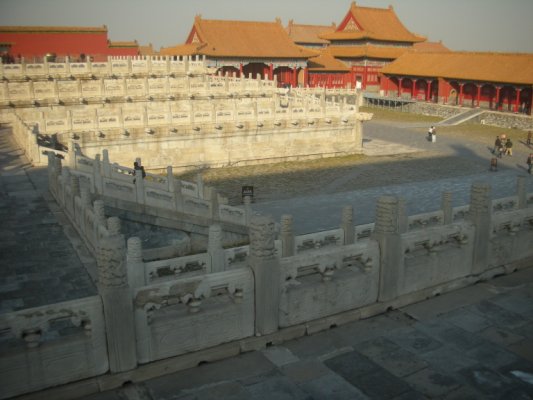南門を抜け、大和門を抜けるとそこには広大すぎる広場があります。この広場に無数の役人が集まり、太和殿にいる皇帝からの命令を受けていました。 この広場は、ラスト・エンペラーで溥儀が即位する儀式のシーンで、無数の官吏がずらりと並んでいた場所ですね。