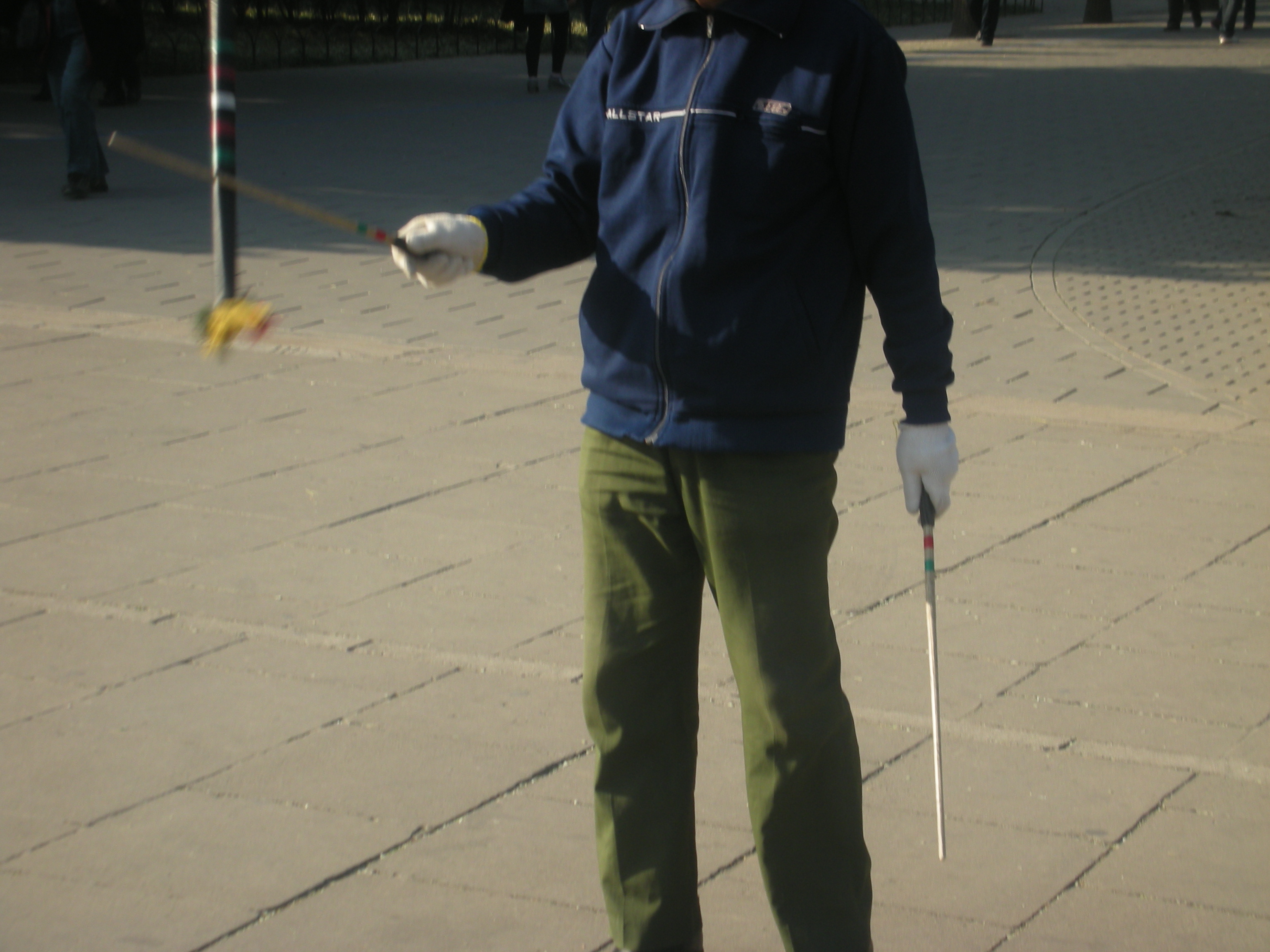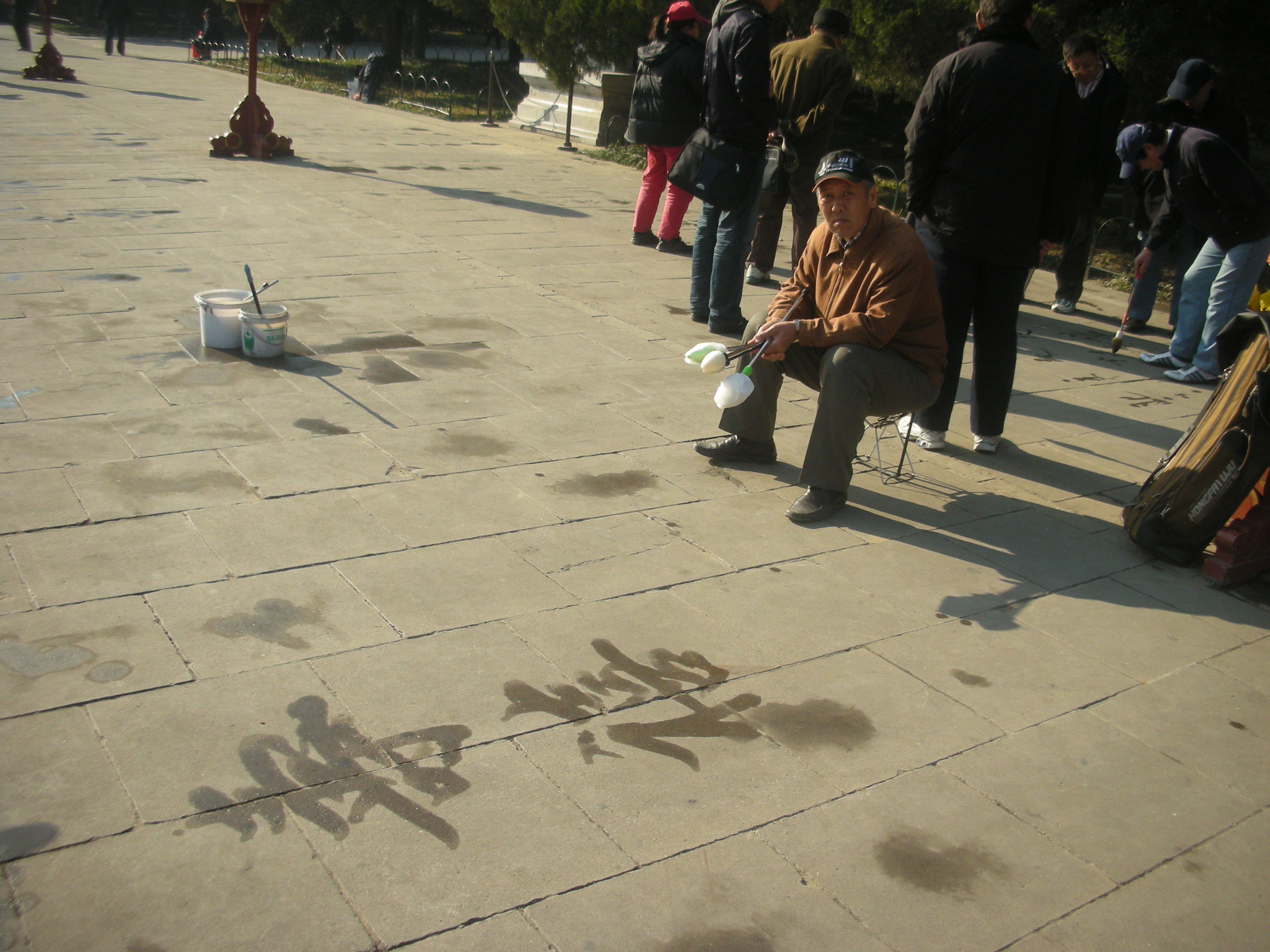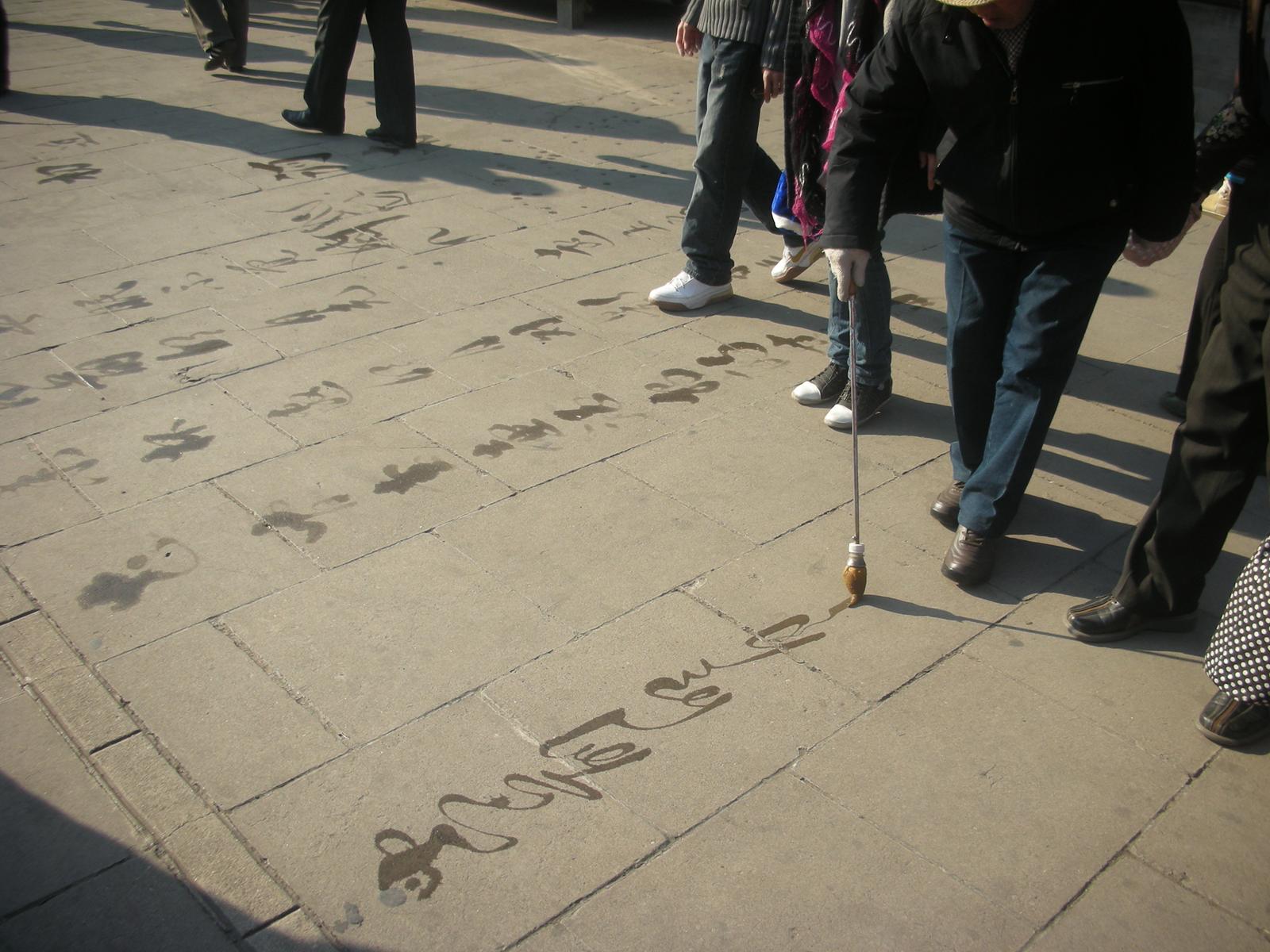 (円丘前広場で水習字するおじさん)