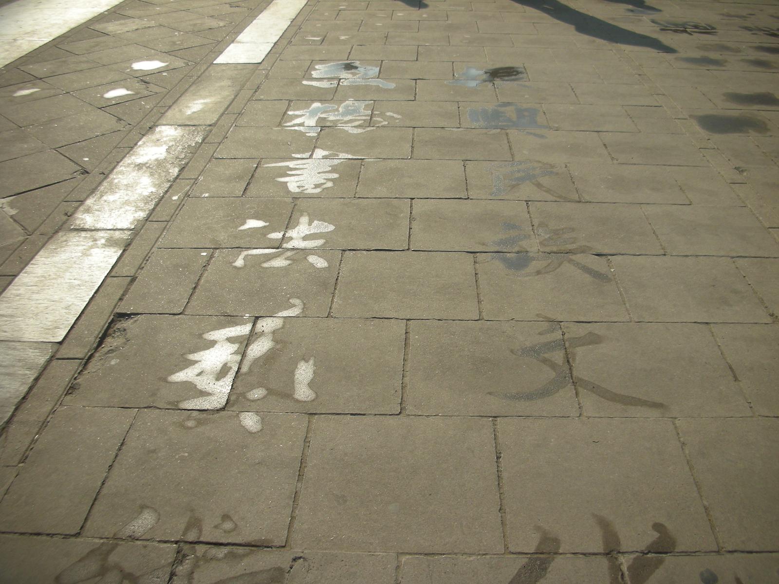 (円丘前広場の水習字。)