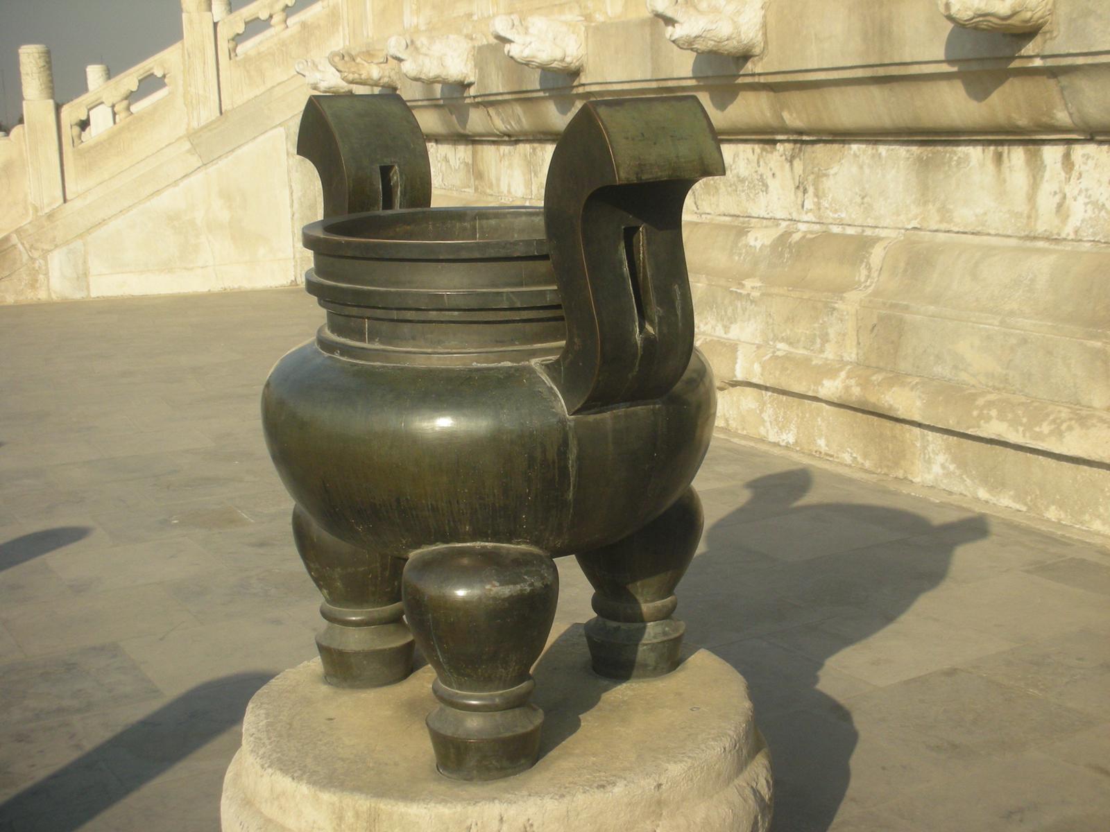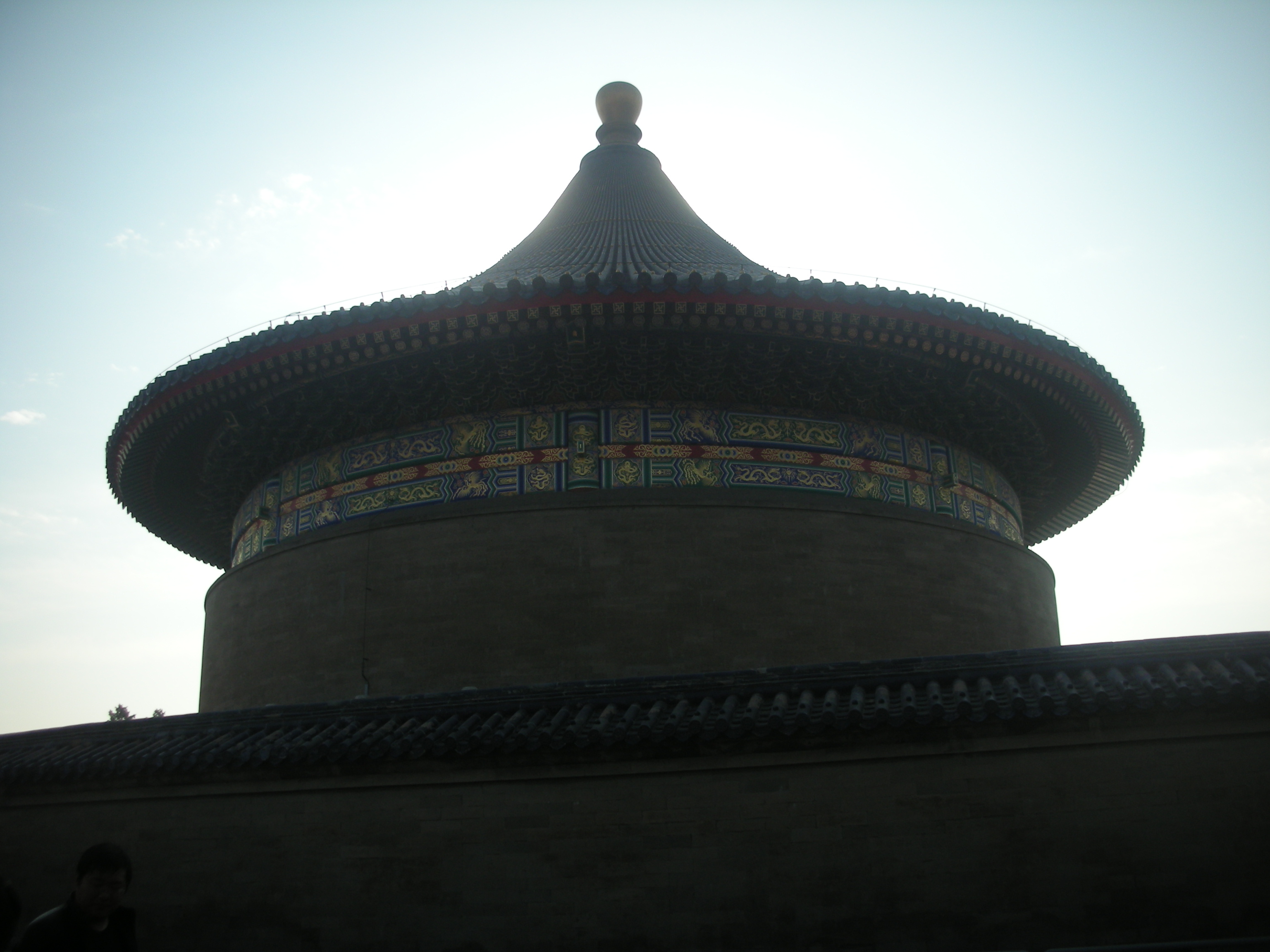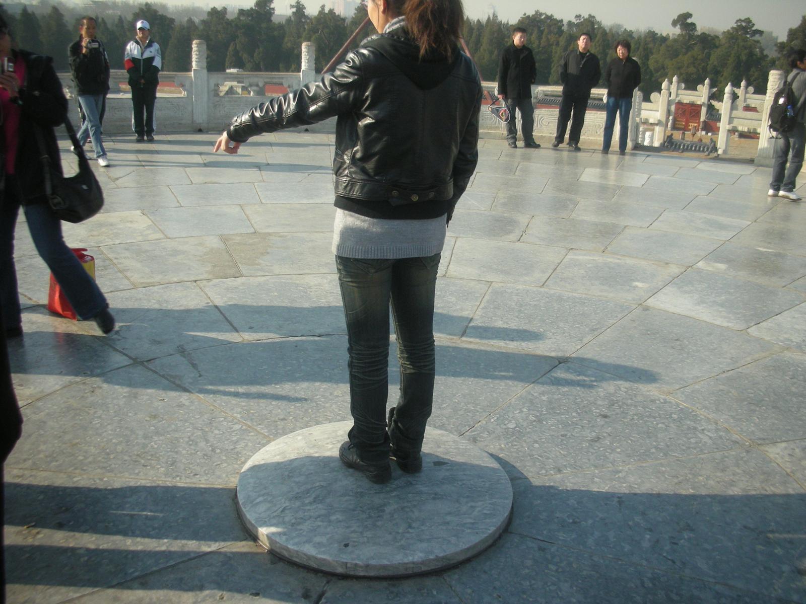 円丘は、歴代皇帝が年に一度冬至の日に、一年の報告を行った場所です。最上段の中心には皇帝が祈りを捧げた「天心石」と呼ばれる丸い石があり、その上で声を発すると、大きなこだまがかえってきます。3層の壇から構成され、上から天上界、人間界、地獄界を表現しています。