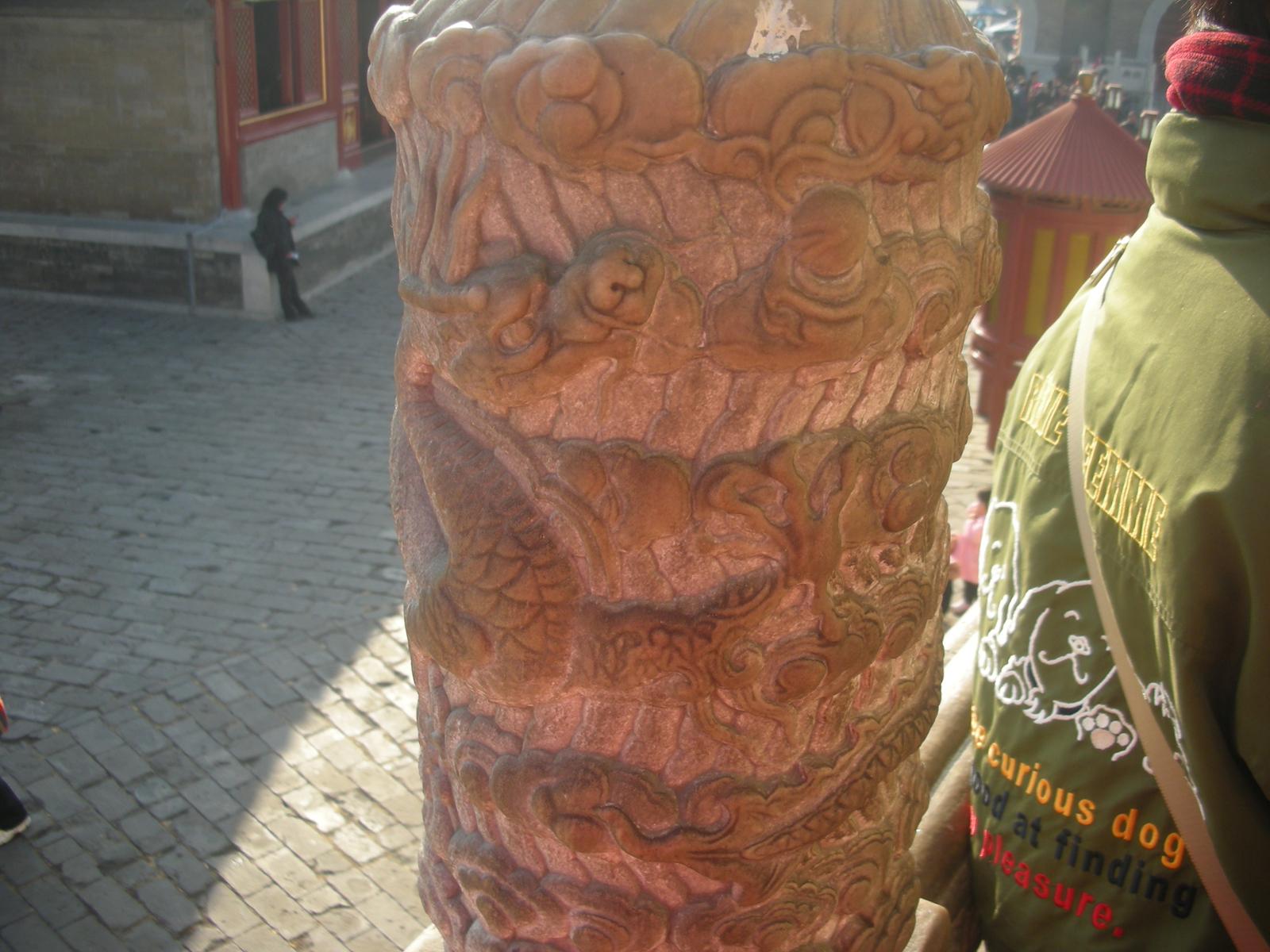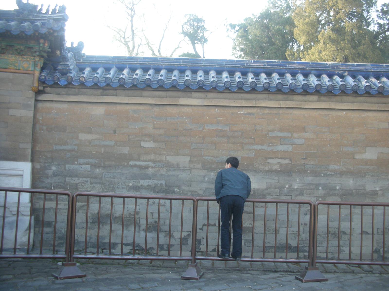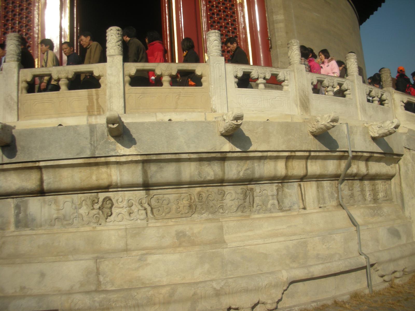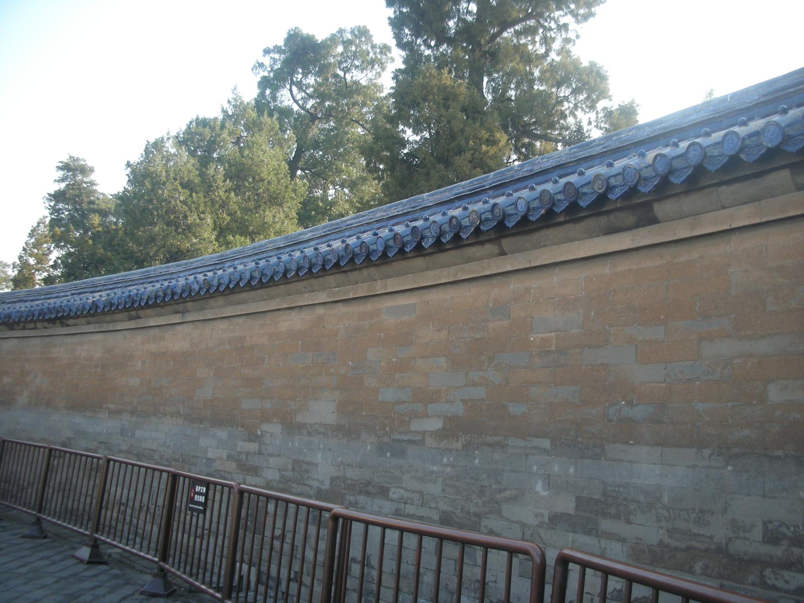 (皇穹宇の回音壁。壁の中は空洞であり、壁に向かって話をすると壁際の人にすべて伝わる。)