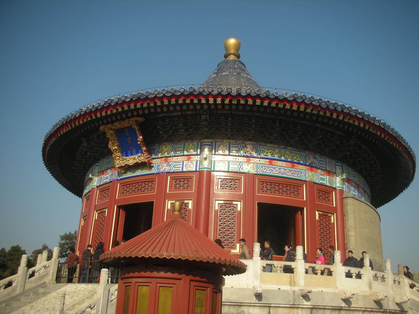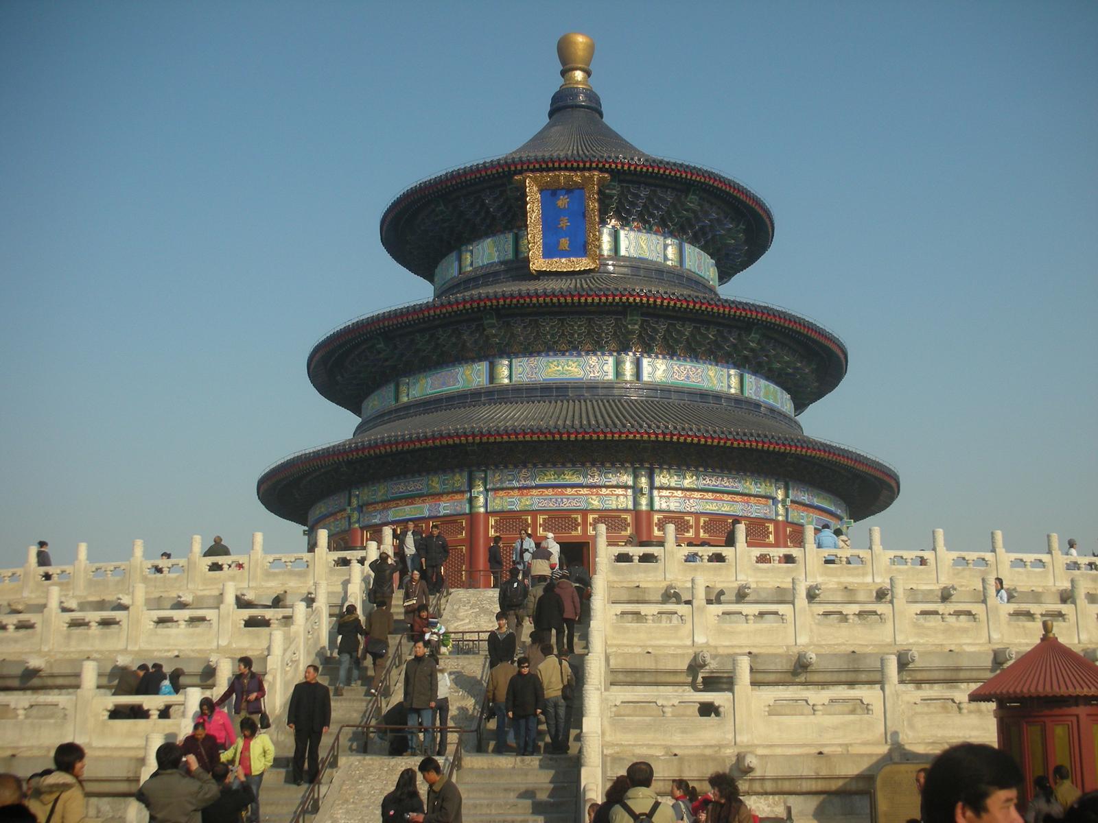 (祈年殿。明の永楽帝が1420年五穀豊穣を祈って建設した。1本も釘を使用していない。)