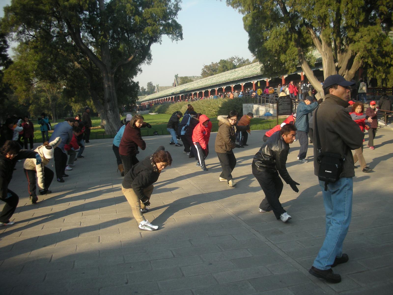 (皇穹宇の後ろで運動する人々。)
