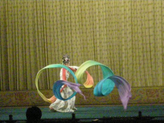 舞台には机1つと椅子2つおかれ、鞭や扇、ハンカチ、旗などの小道具を使います。かつて西太后が京劇が好きだったことから、役者の育成や発展に力を入れたことで京劇の技術が飛躍的に伸びたと言われています。