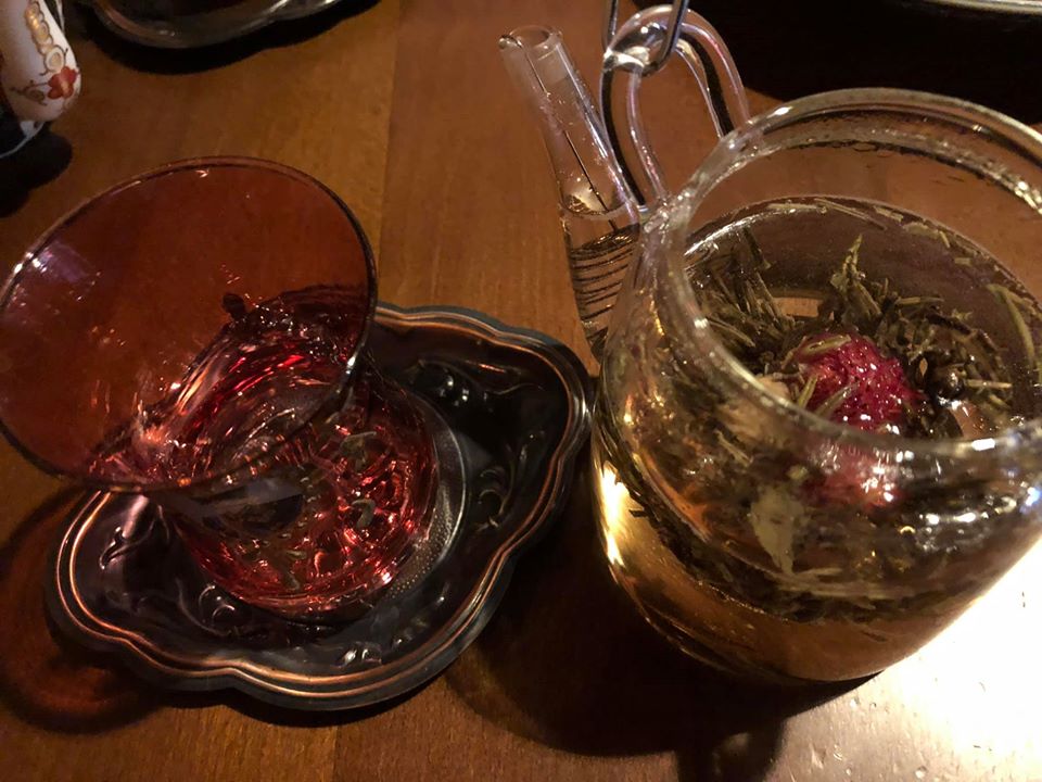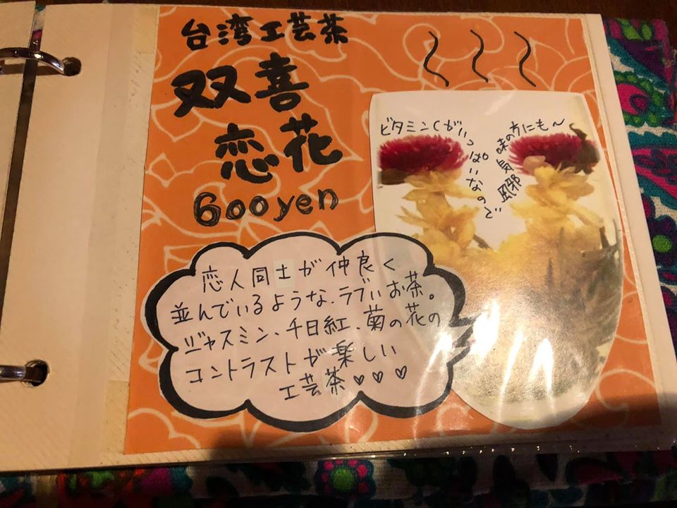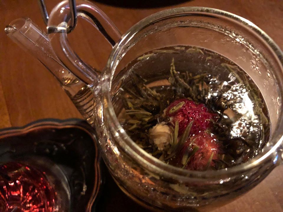 今日いただいたのは皮蛋豆腐、オリジナルカレー、昔ながらの明太子スパゲティ、あさりスパゲティでした。どれもあつあつ ふうふうの懐かしい味でした。食後にはきれいなお花が入った台湾工芸茶である喜恋花で寛ぎながら口直しできました。