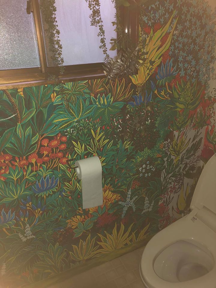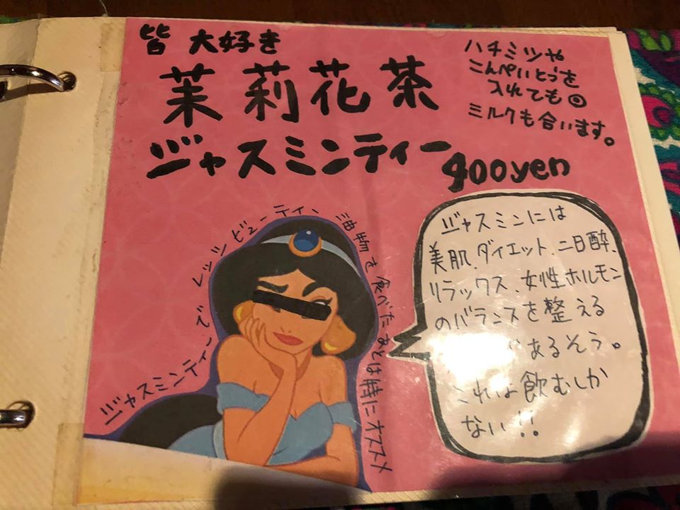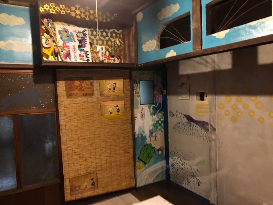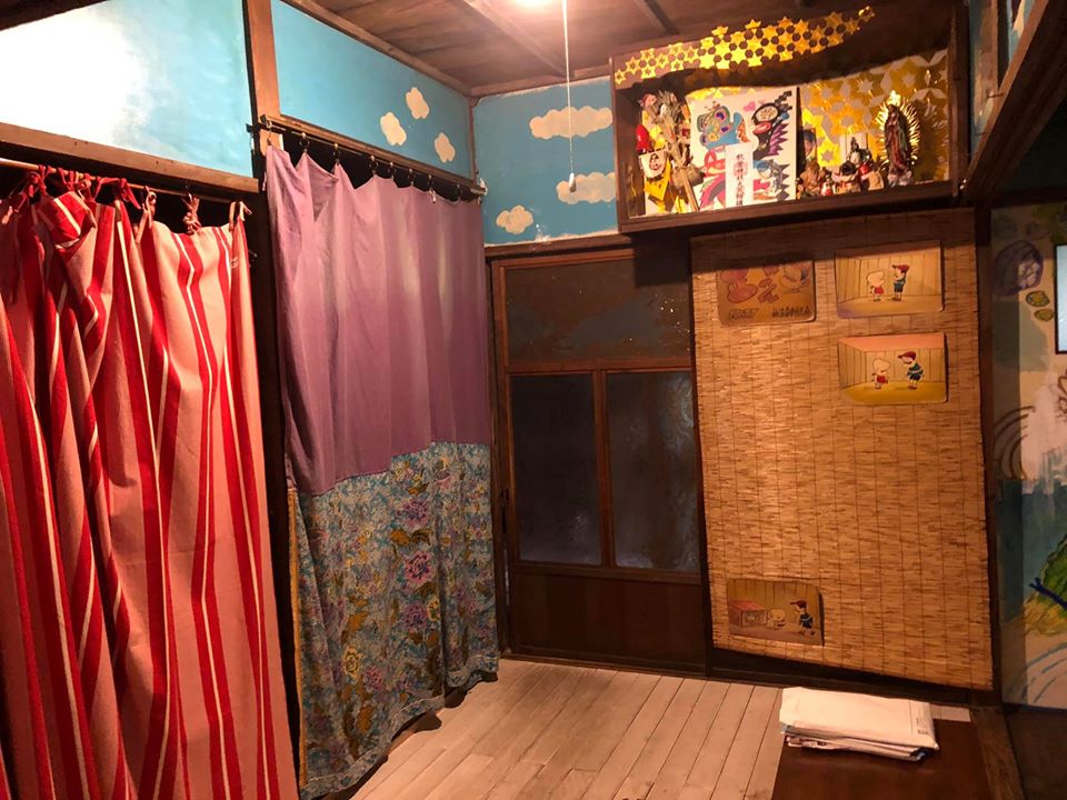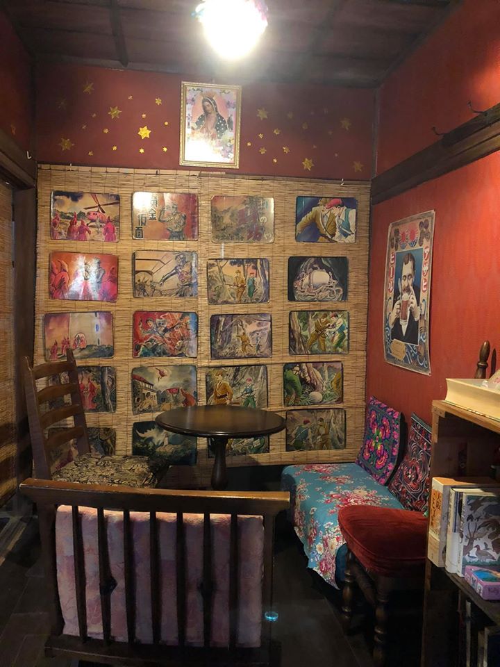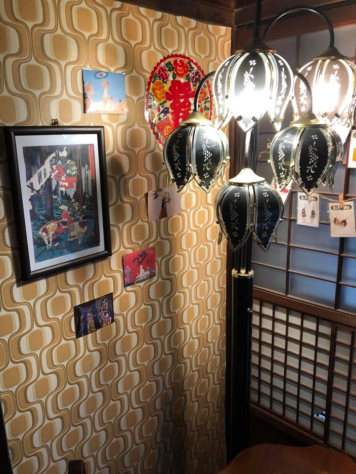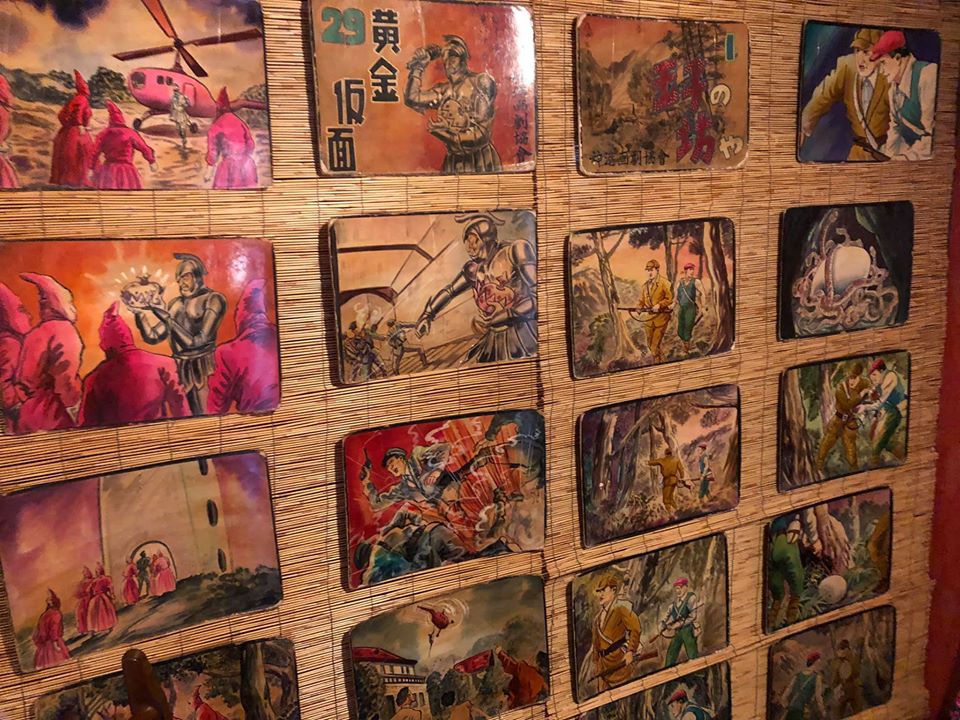 店の中にはバーカウンターがあり、昔ながらの昭和の漫画が壁に飾られていました。トイレまで自然色に装飾されビックリしました。