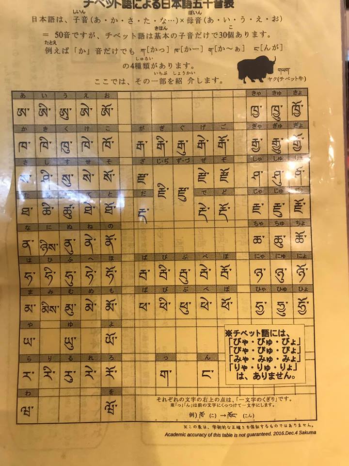 (チベット語講座。表音文字のようです。)