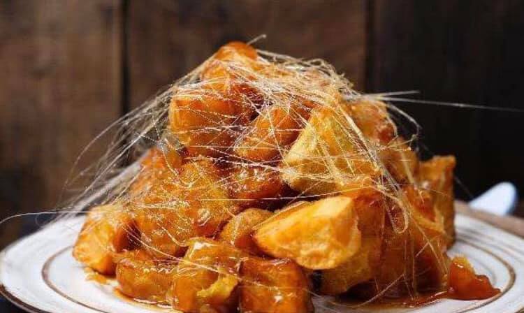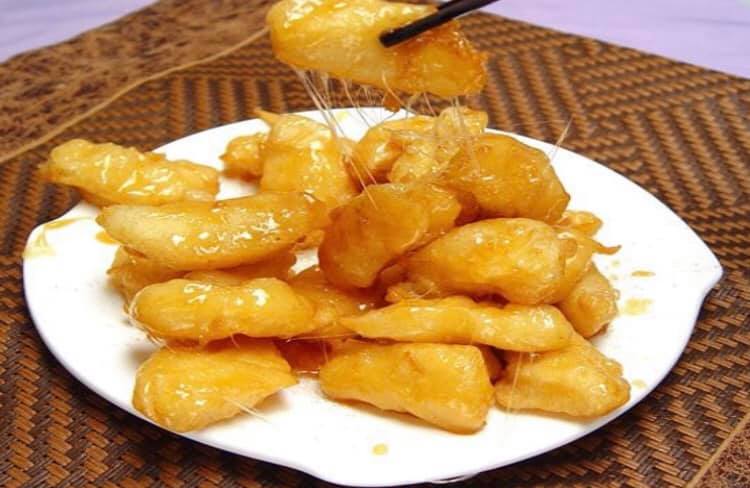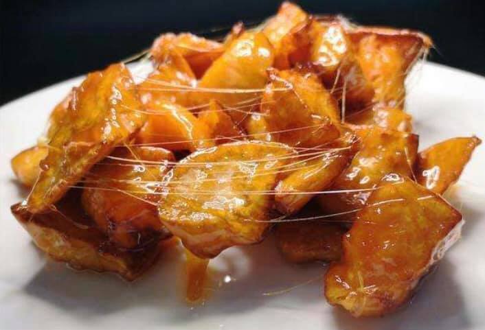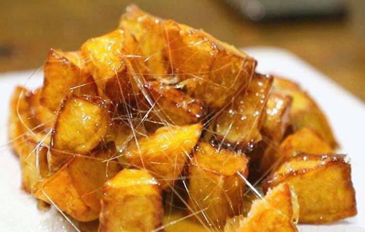 中国の拔絲紅薯はお皿に飴がえげつないくらいくっつき、早く食べないと飴が固まり、芋が皿から離れなくなるくらいでした。しかしさつまいもの程よい甘さとカリカリした飴の食感がたまらず、甘党にとってはたまらない美味しさです。
