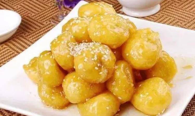 抜絲とは、糸(絲)を引く」という意味で作りたての飴を引張ってまるで糸のようになった飴をバナナやさつまい等の揚げものに飴がけした甘い料理のことで北京料理や中国東北部の宴席などで時々出されます。