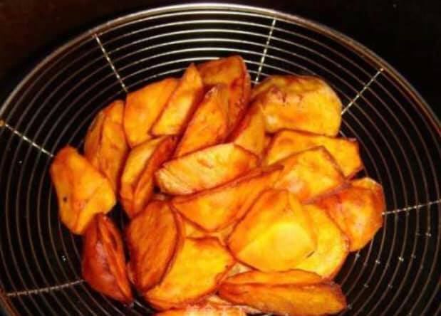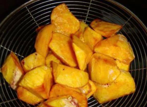 5、さつまいもを1回目は150℃で揚げます。2回目は180℃で黄金色になるくらい揚げます。