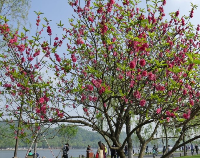 今日は西湖の旅行記の最後を締めくくるべく、春の桃の花の薄紅色と柳の新緑とのコントラストが美しい白堤の景観を詠んだ白居易の「春題湖上」を中国語で味わってみたいと思います。