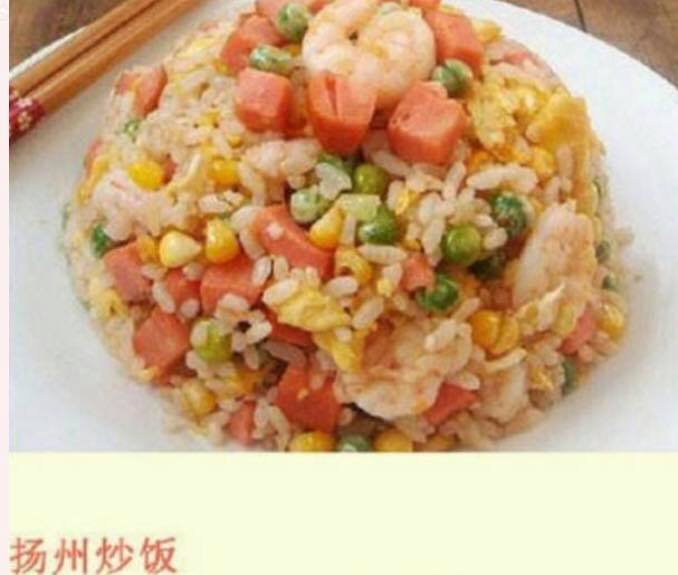 (中国で広く食べられる揚州炒飯。店や家庭でいろんな違う具材を使います。)