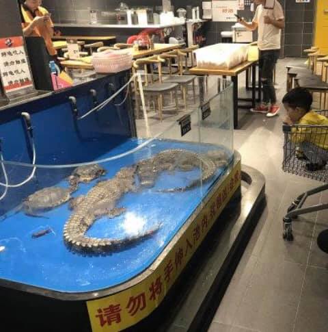 ((ご参考)これは広西省ですが、店内のワニが逃げたところです。怖いな。)