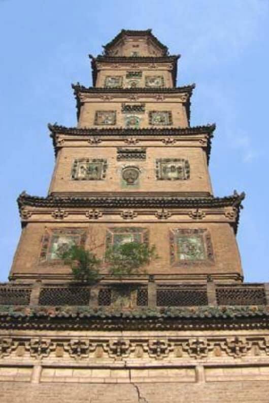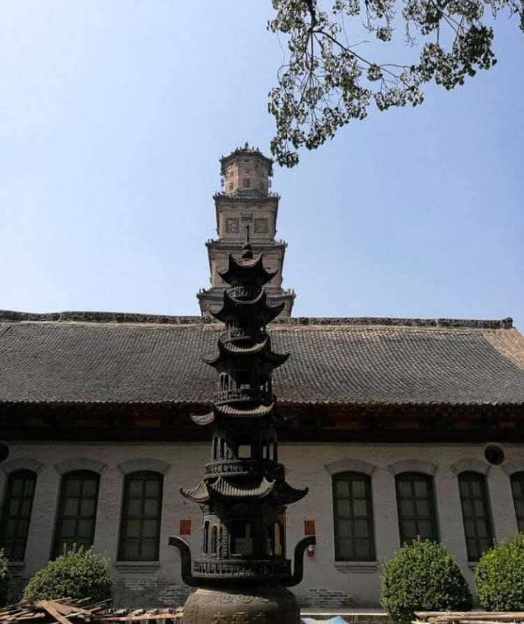 大雲寺は別名鉄佛寺といいます。このお寺には唐の貞観6年(632)に創建されたレンガ造りの仏塔、金頂瑠璃宝塔があります。