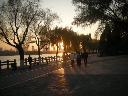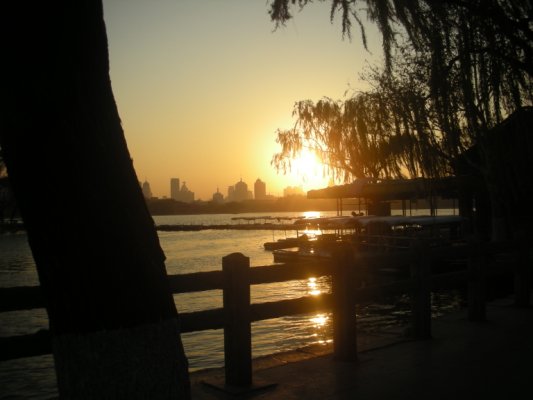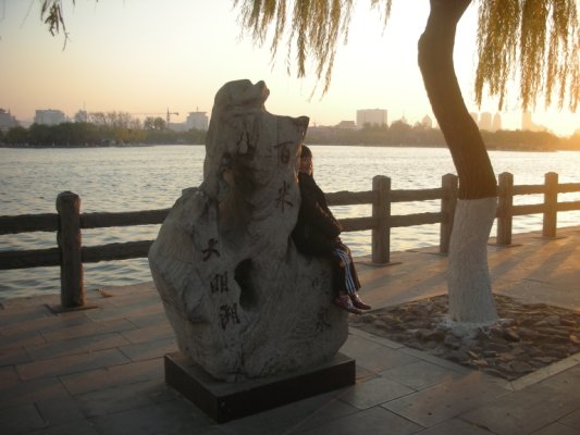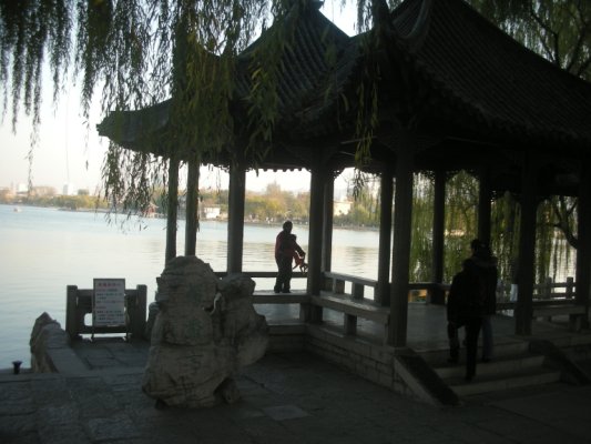 大明湖は6つの島がある小さな湖で、公園に囲まれています。多くの泉で形成され、中央に大きな噴水があります。夏になると巨大な葉を持つ蓮が咲き乱れるようです。