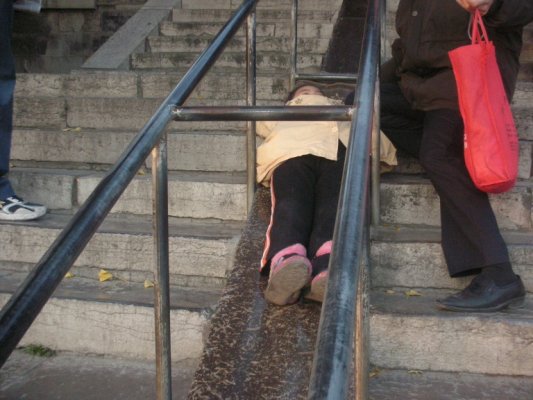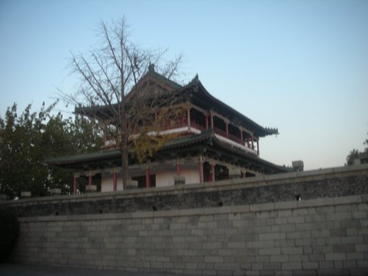 (城壁付近でゴミを一杯に自転車に積んで運ぶ人!危ないです!)