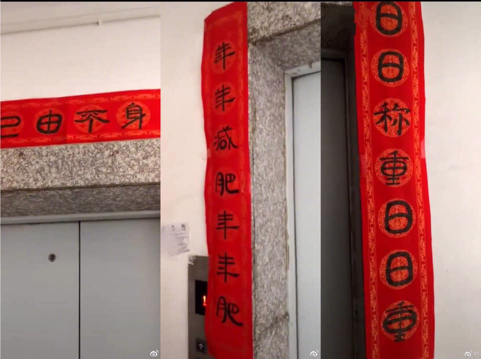 インターネットで調べてみると上聯"日日称重日日重(毎日毎日体重を測っても体重が重くなる)"、下聯"年年?肥年年肥(毎年毎年ダイエットをしても太る)"、横批"身不由已(いやでもしなければならないこと)"等、ユーモア溢れるオリジナルのものも見られます。