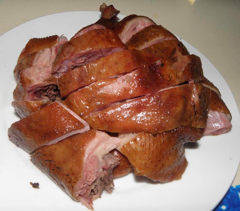1、牛肉を厚さ6cmの塊に切ってから、山椒、八角、肉桂の粉末、硝石水、塩を混ぜ合わせてすりこむ。