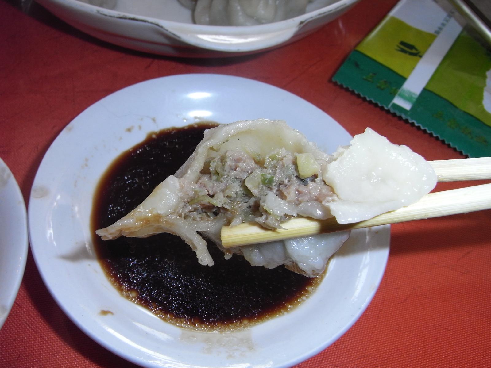 (餃子の具にはモンゴルの羊肉を使い、しかも野菜をほとんど使わない肉餃子なのです。)