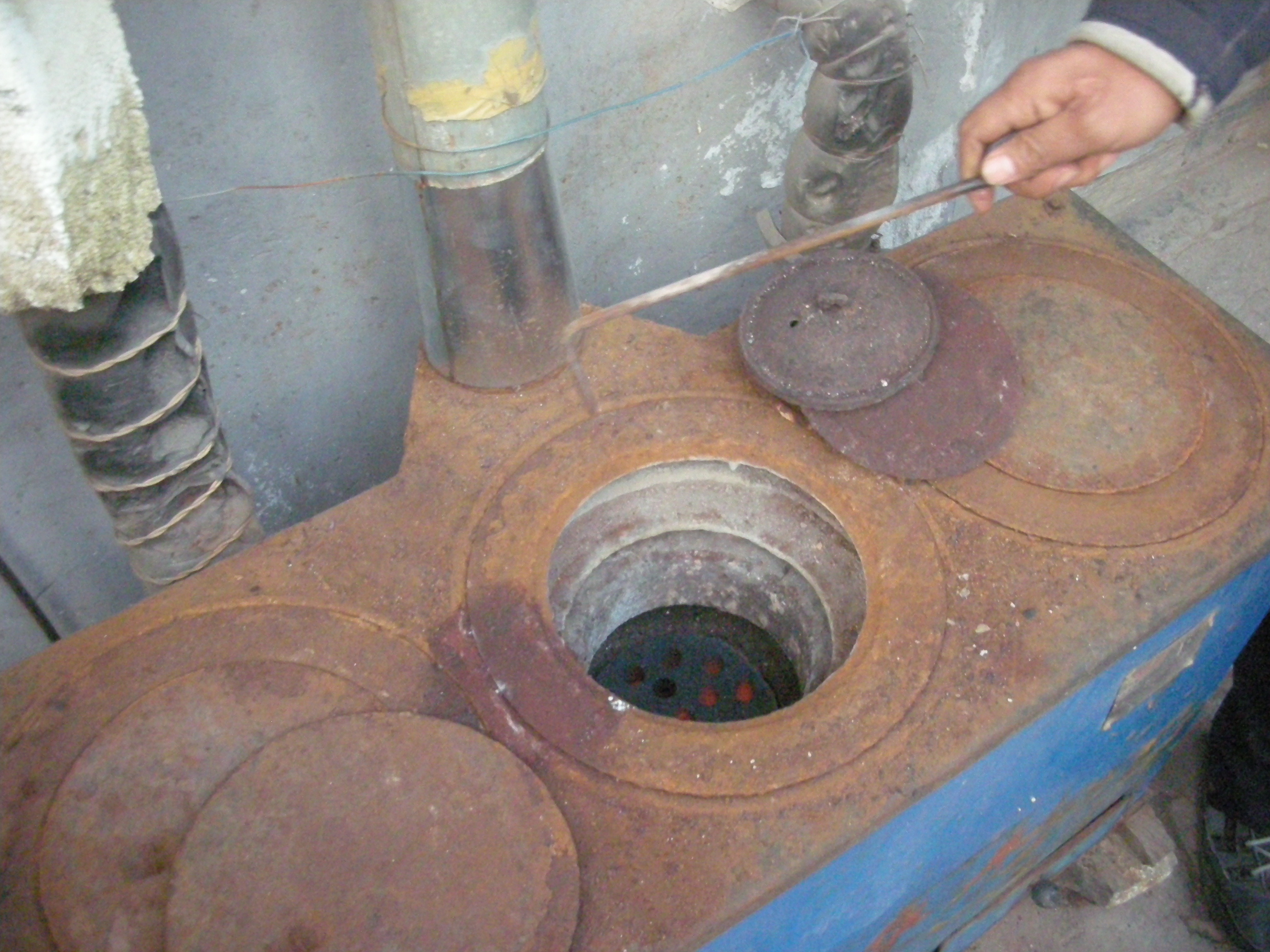 (木炭のストーブ。)
