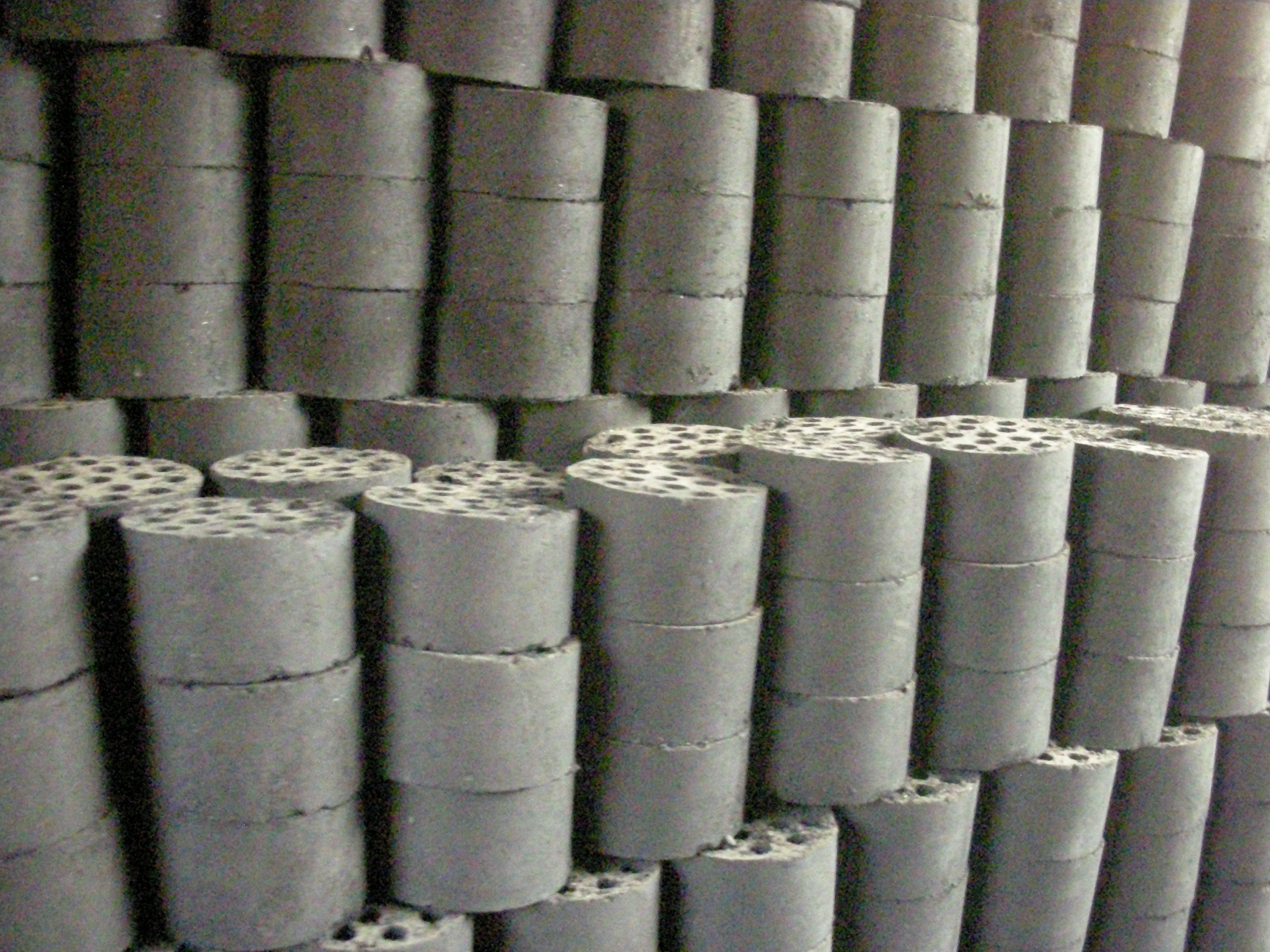 (家を温めるための木炭が積まれています。)