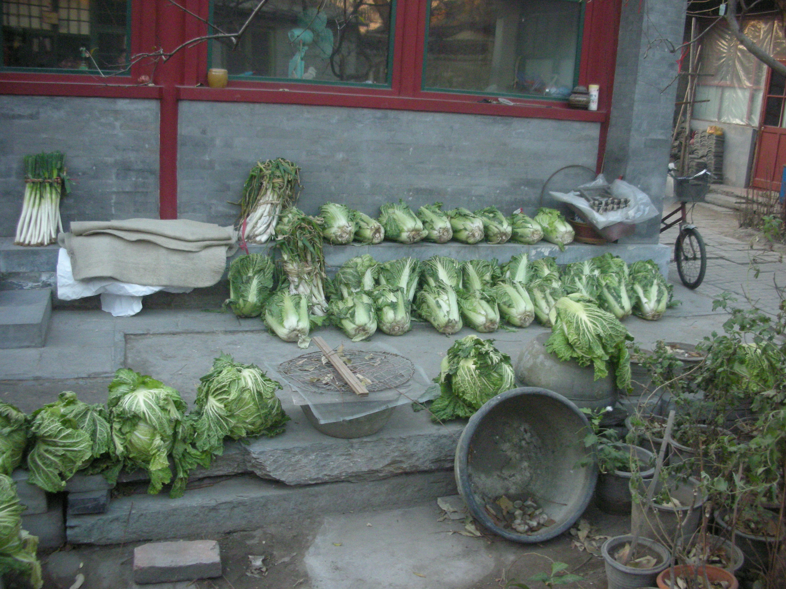 (白菜を乾燥しています。)