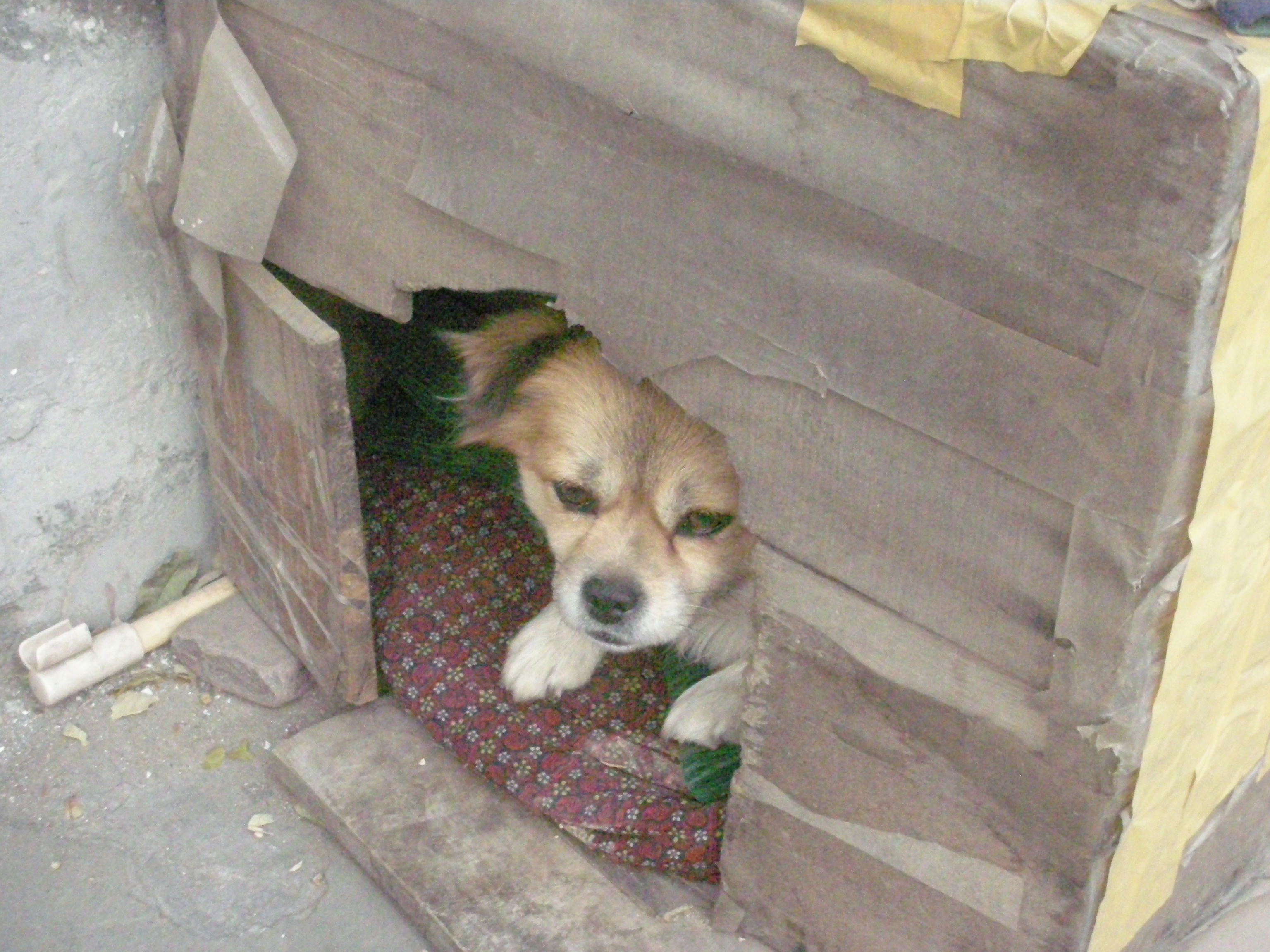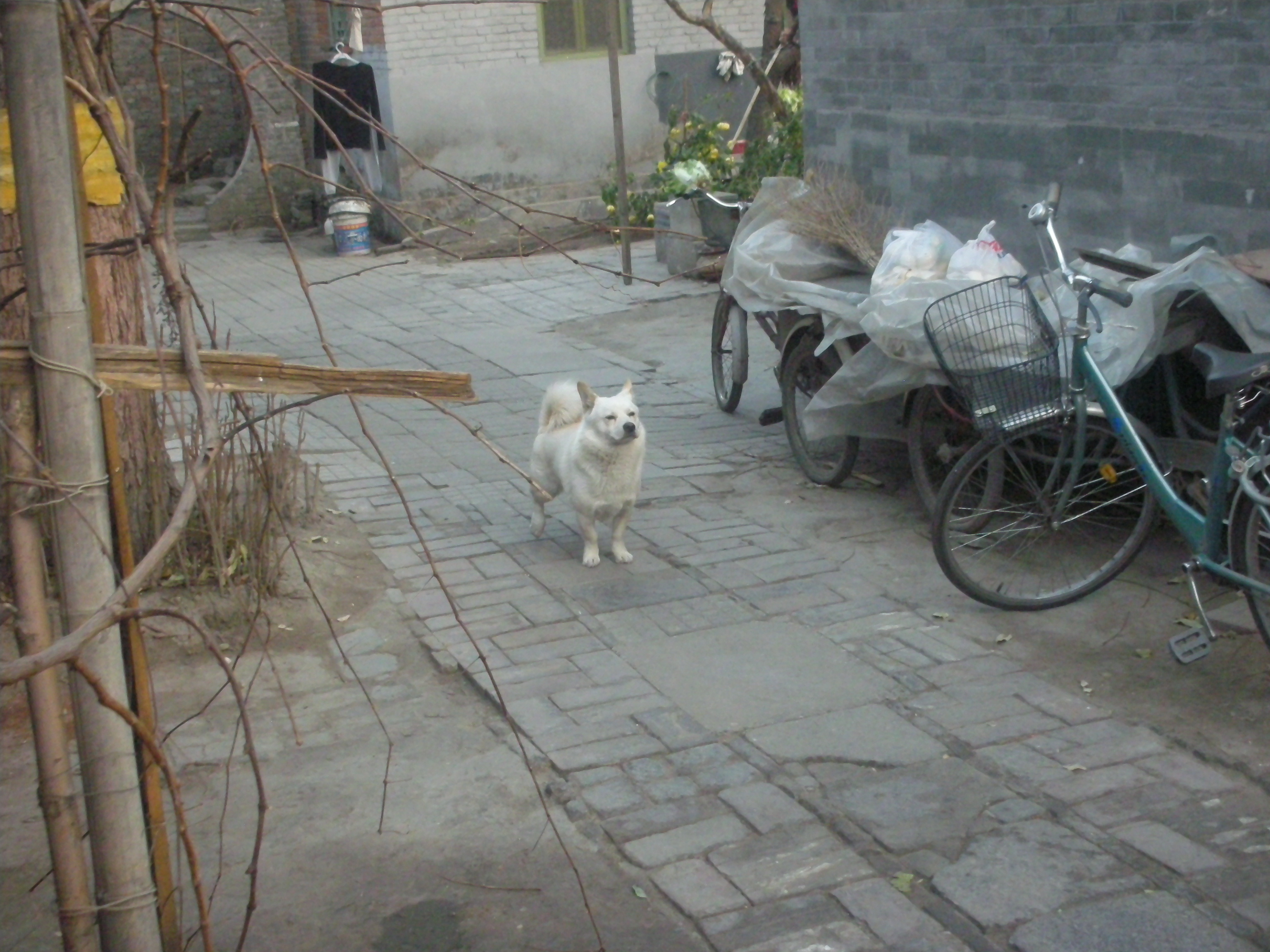 (四合院作りの住宅で飼っている犬。)