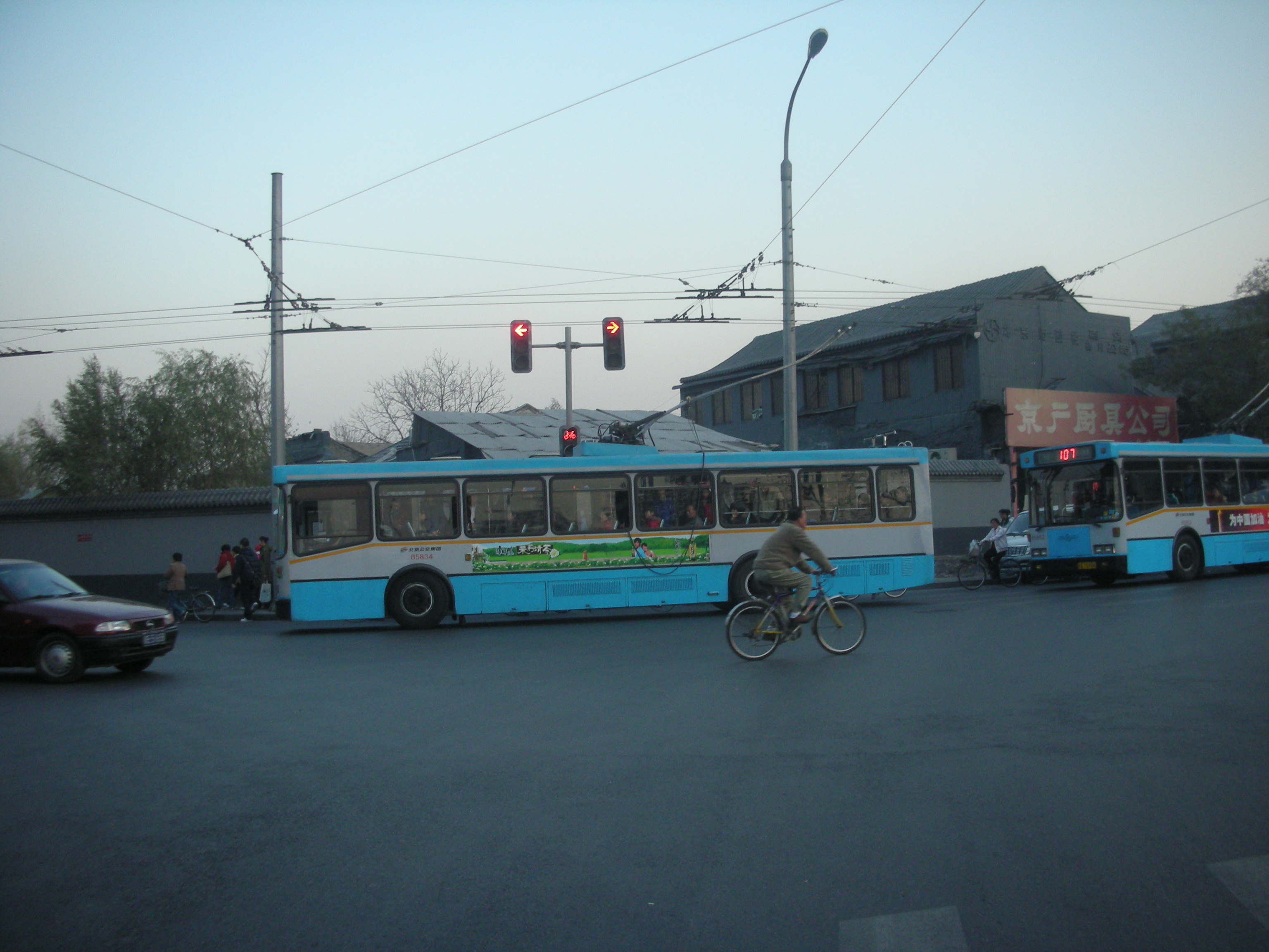 (胡同の路地を走るバス。)
