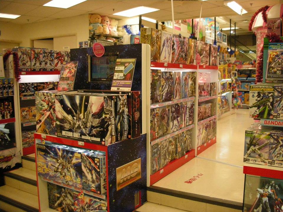 (深センのイオンのおもちゃ売り場。ガンプラが所狭しと並んでます。)