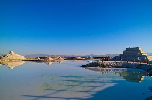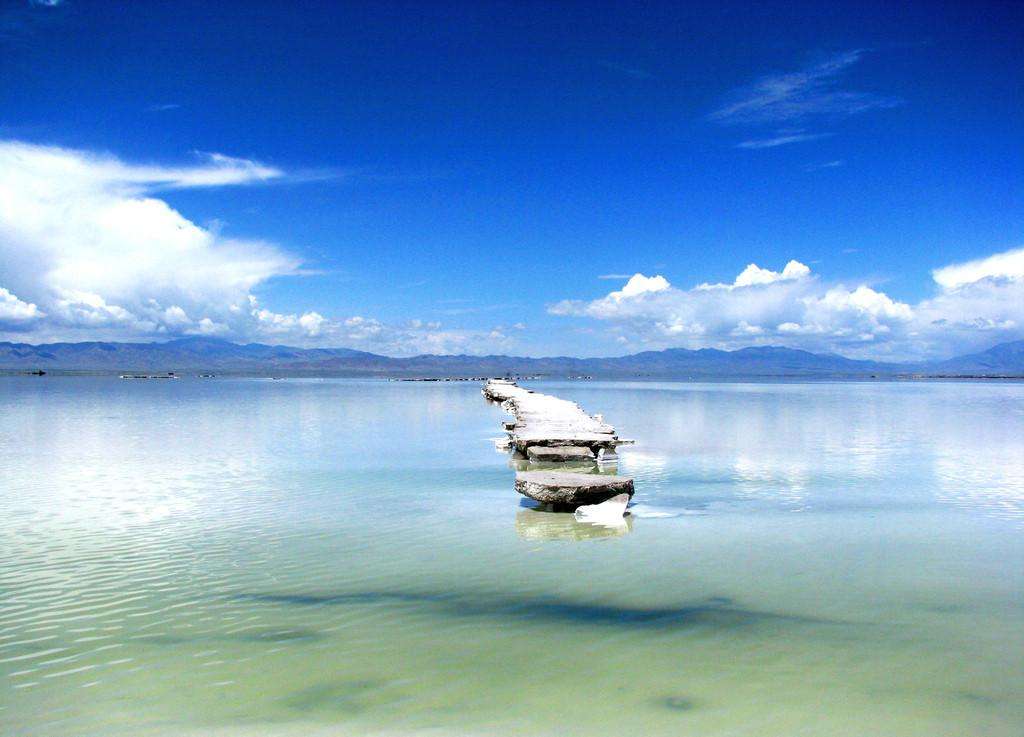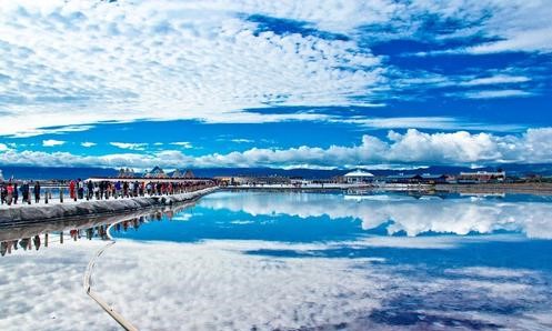 塩湖といえば、南米ボリビアのウユニ塩湖が有名ですが、中国にも天空之?と呼ばれる海西チャカ塩湖があります。一面遠浅の湖が広がり、風で水面が波立たなければまさに天空の鏡のようです。