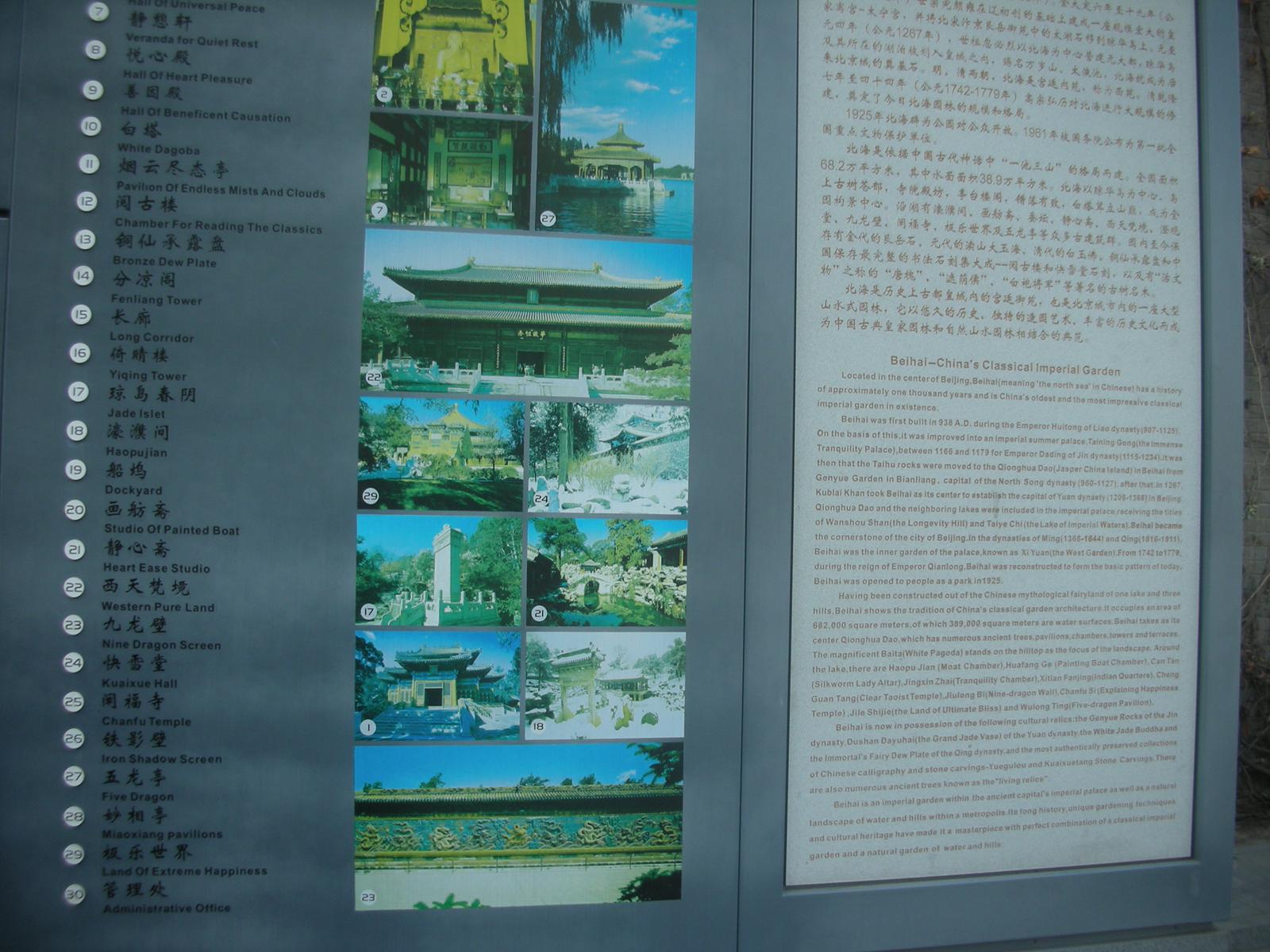 北京は北海公園を中心に街づくりが進められ、10 世紀の遼王朝時代から元のフビライ等、複数の皇帝により1000年以上に亘って皇室庭園としても拡充されてきました。