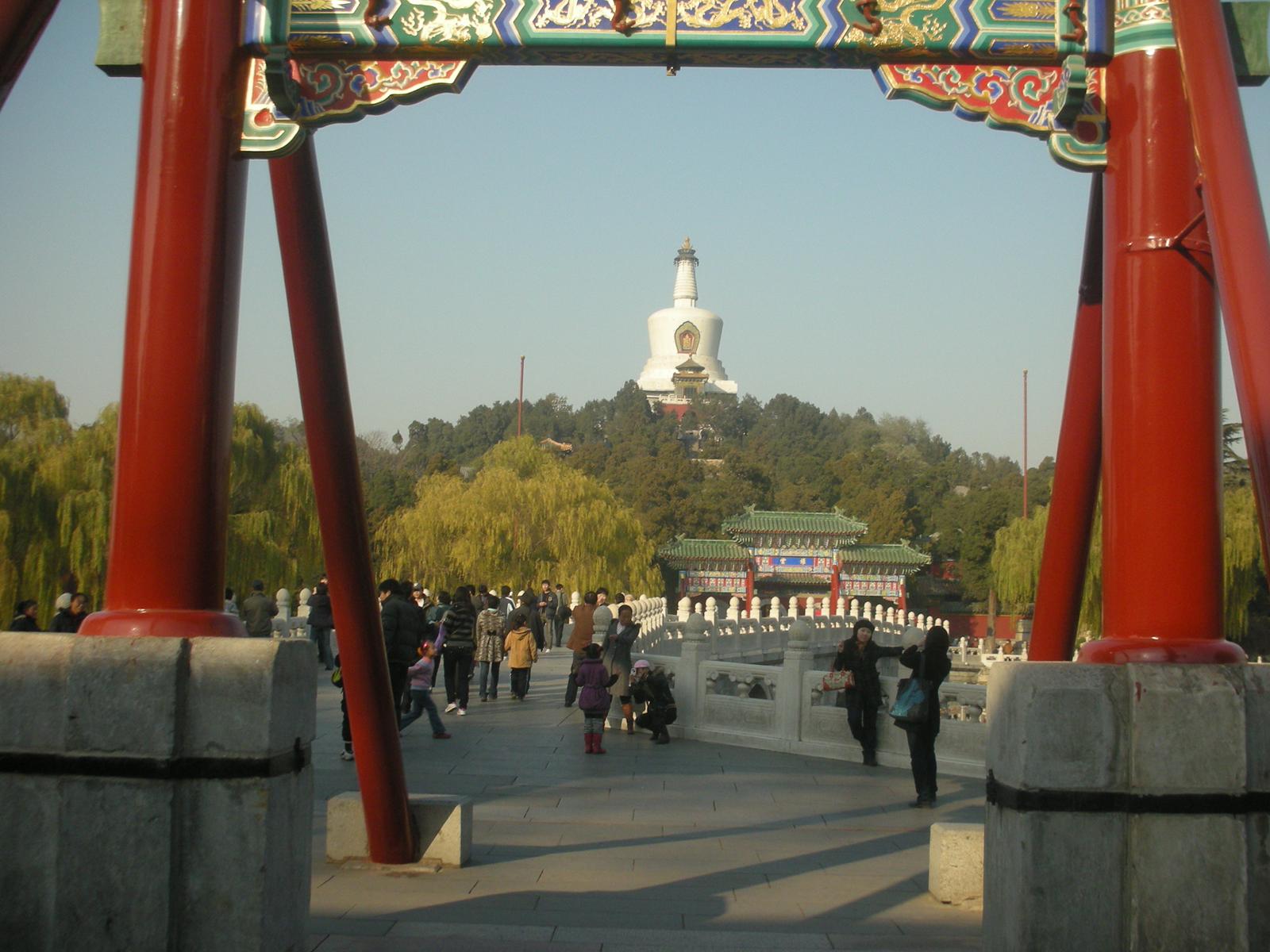(永安橋。橋の向こうは瓊華島 中央は白塔(チベット仏教の塔)。)