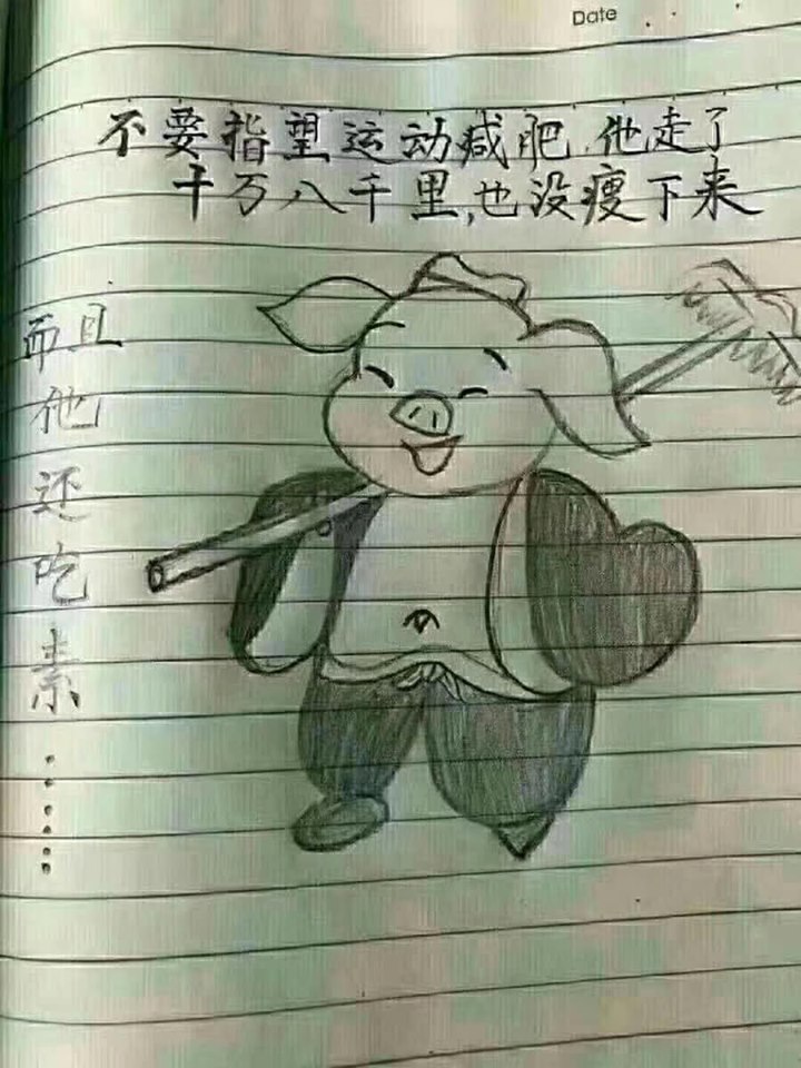 八戒の絵はよくかけてますね。子供の作文は笑えますが、先生のコメントも笑えます。
