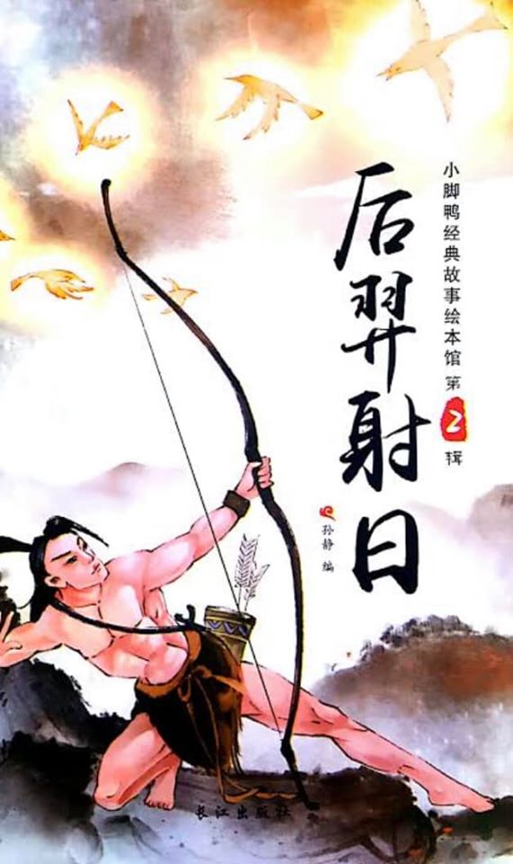 天帝である帝氓ノは羲和という妻がおり、その間に太陽となる10人の息子(火烏)を産んだ。この10の太陽は交代で1日に1人ずつ地上を照らす役目を負っていた。ところが帝堯の時代に、10の太陽がいっぺんに現れるようになった。地上は灼熱地獄のような有様となり、作物も全て枯れてしまった。このことに困惑した帝堯に対して、天帝である帝氓ヘその解決の助けとなるよう天から神の一人である?をつかわした。帝氓ヘ后?に紅色の弓(?弓)と白羽の矢を与えた。后?は、帝堯を助け、初めは威嚇によって太陽たちを元のように交代で出てくるようにしようとしたが効果がなかった。そこで仕方なく、1つを残して9の太陽を射落とした。これにより地上は再び元の平穏を取り戻したとされる。