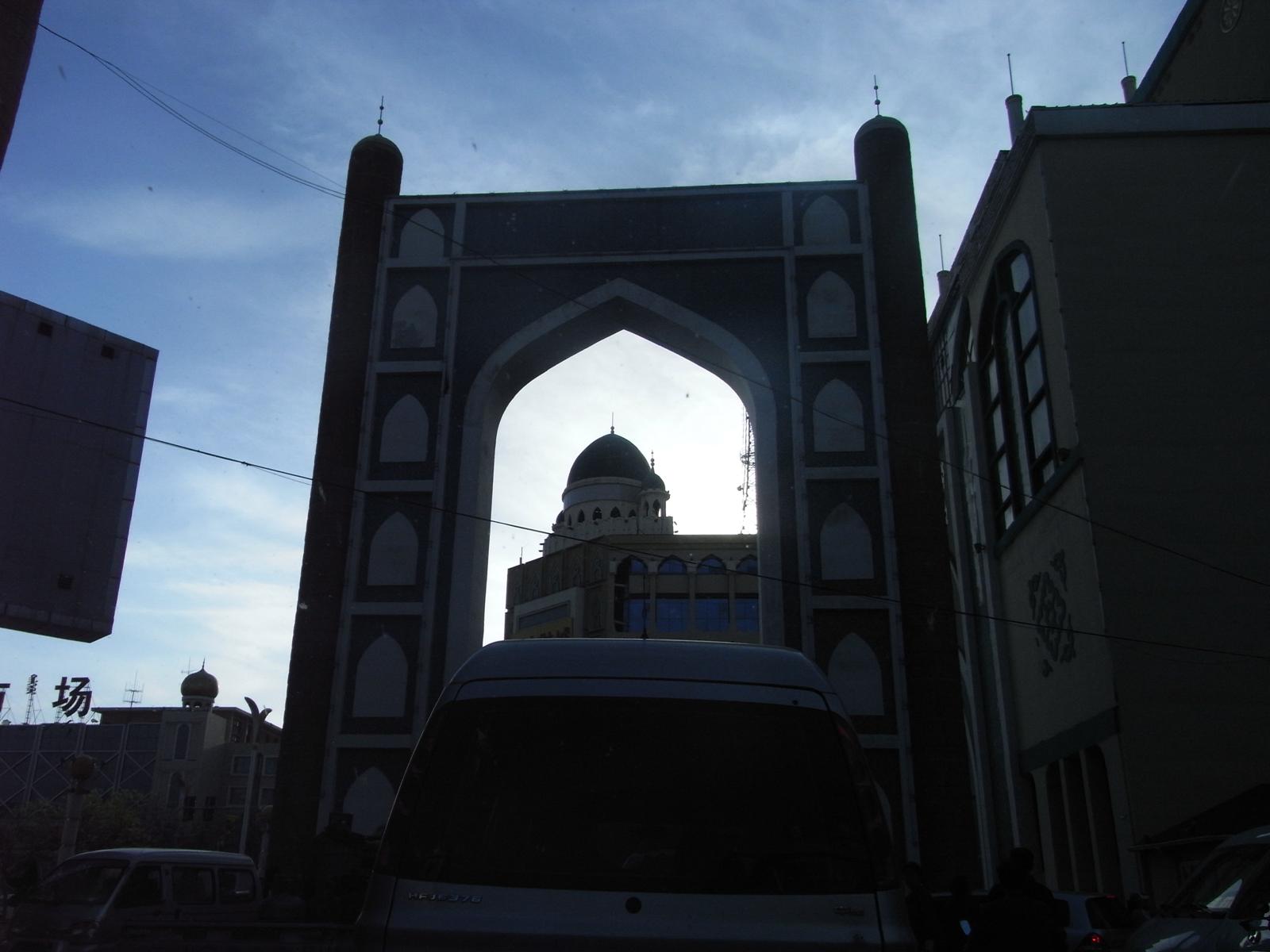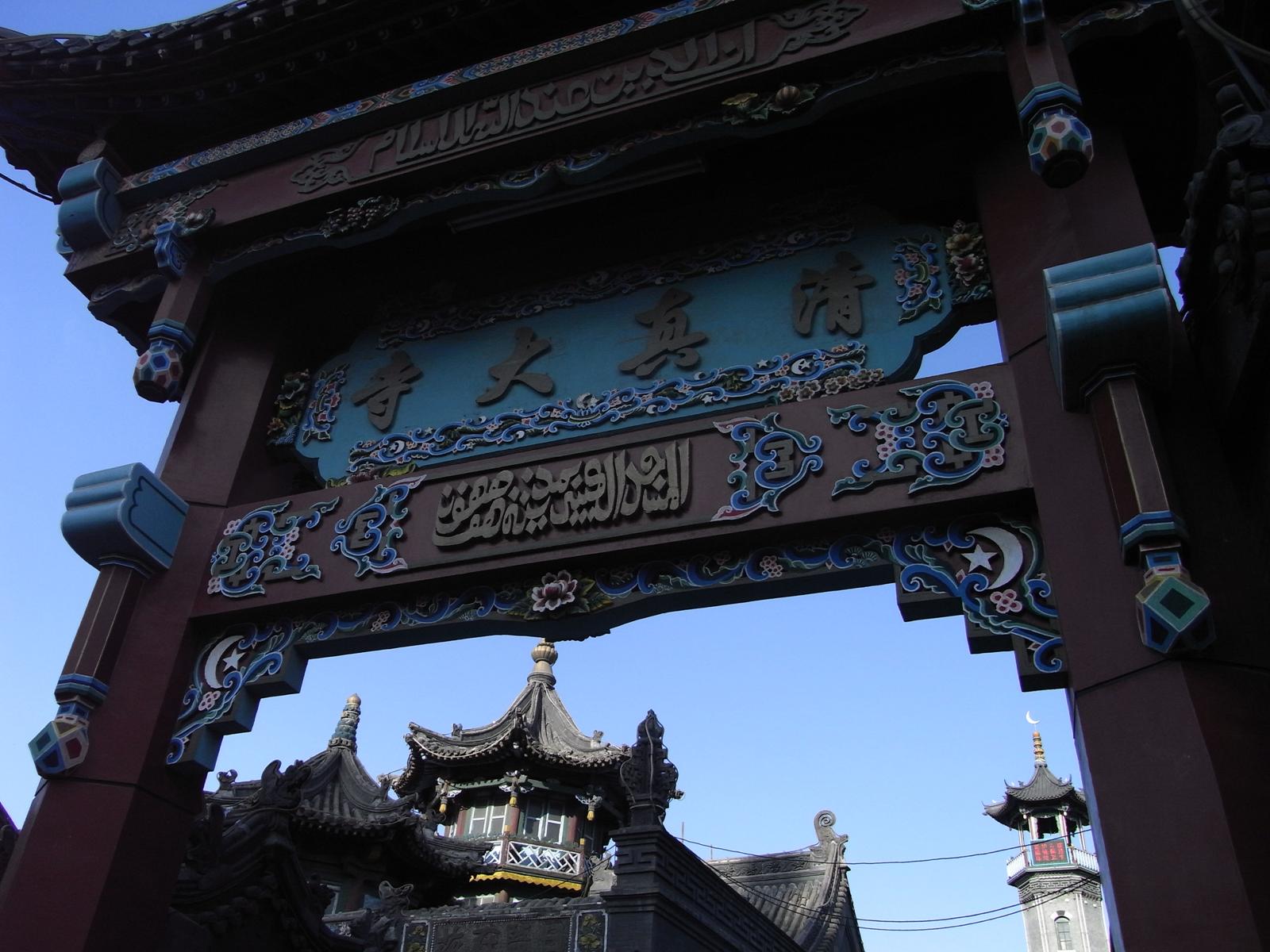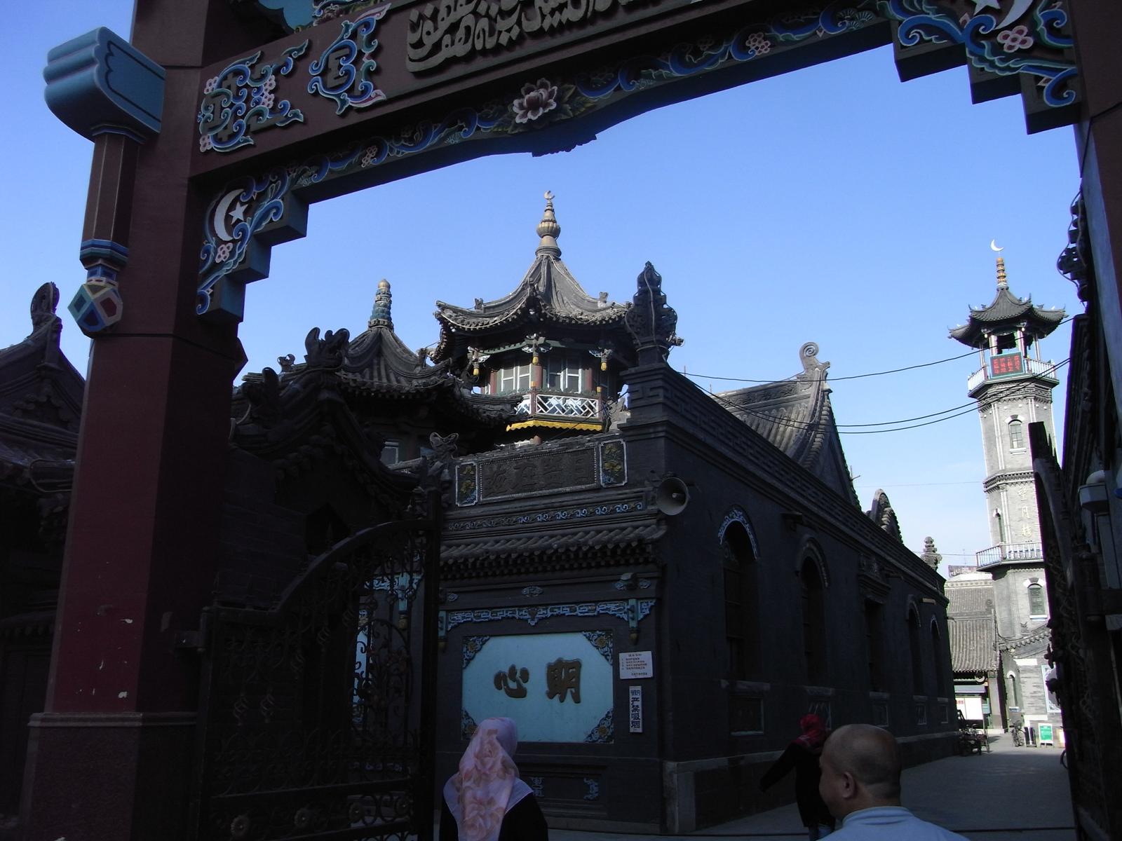 (イスラム寺院の清真大寺の門。イスラムと漢民族の文化が融合した建物に見えますね。)