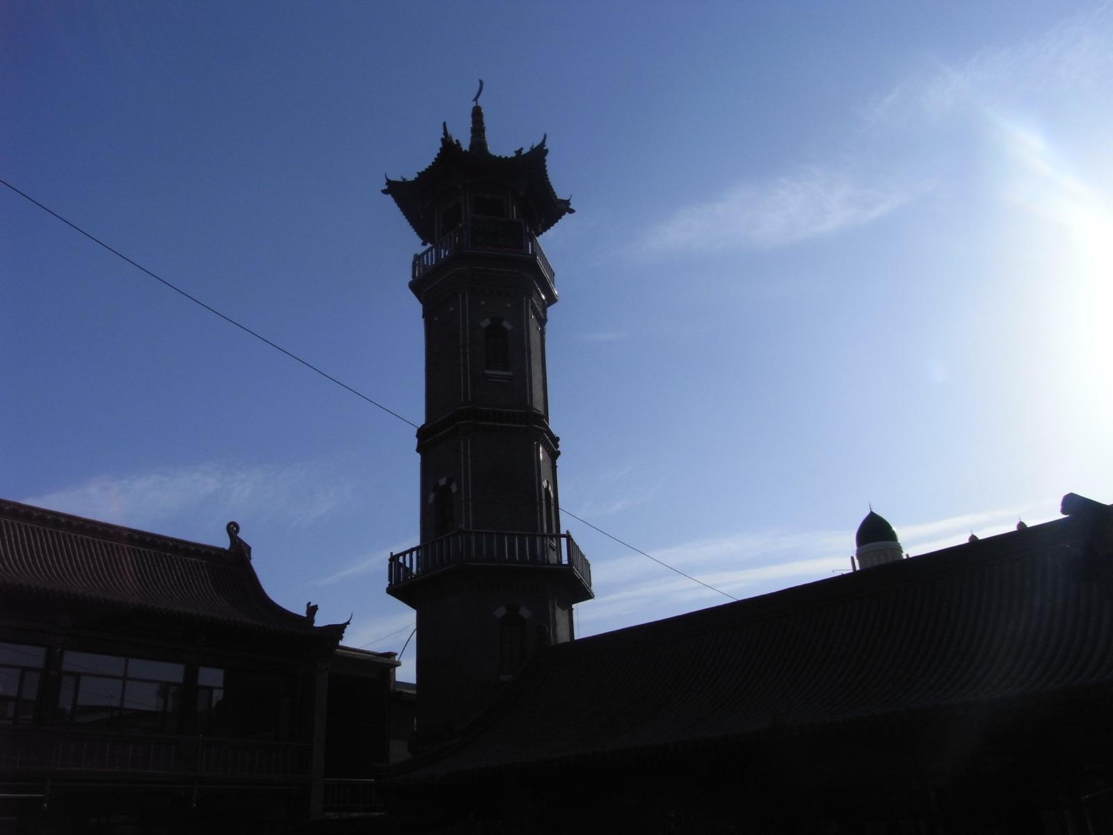 イスラム風情街の中心にはイスラム教の寺院である清真大寺があります。これは清の乾隆帝の時代、イスラム族が大量に新疆からフフホトまで移住して来て、広大なモスクを建てたことがその起源とされています。寺院の正門は聖地エルサレムのある西に向って建てられ、色々なイスラムの模様が装飾されています。寺院の建築は、聖殿、講堂、イスリム浴室などがあります。またイスラム教徒の寄付で、境内に6角4階の望月塔が建築され、貴重なアラビア語のコーラン経30冊収蔵されています。