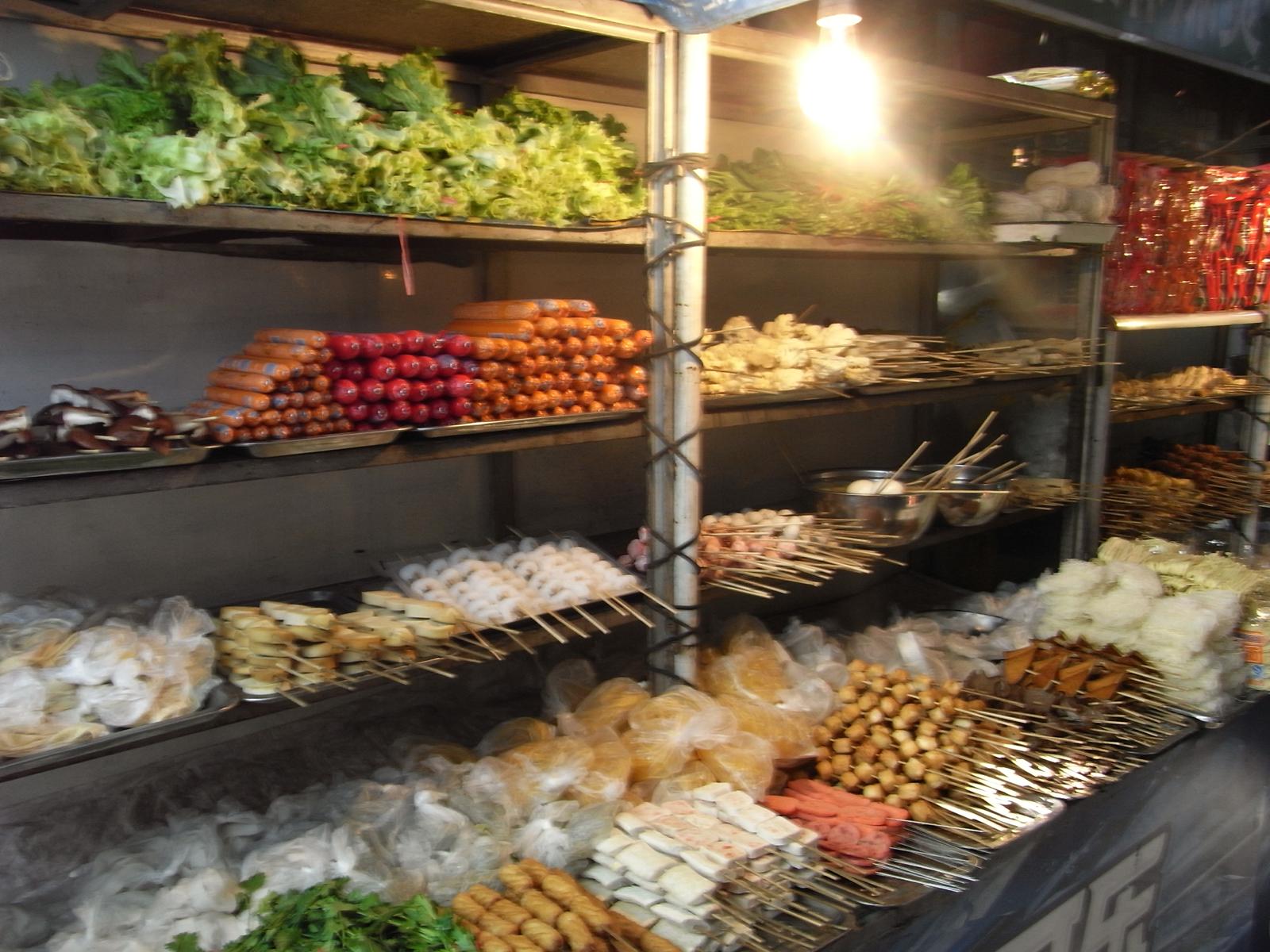 (いろんなお惣菜を売ってます。幼虫も売ってますね。)