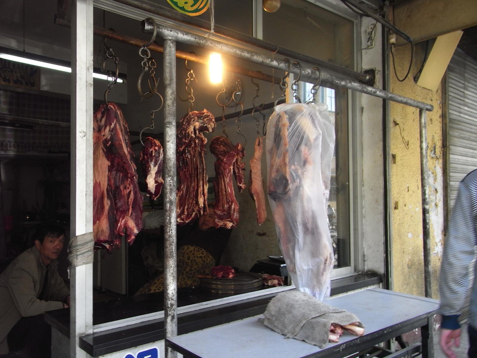 (羊肉がぶら下がってます。これを見るとどうしてこんなにワクワク嬉しくなるのだろうか。)