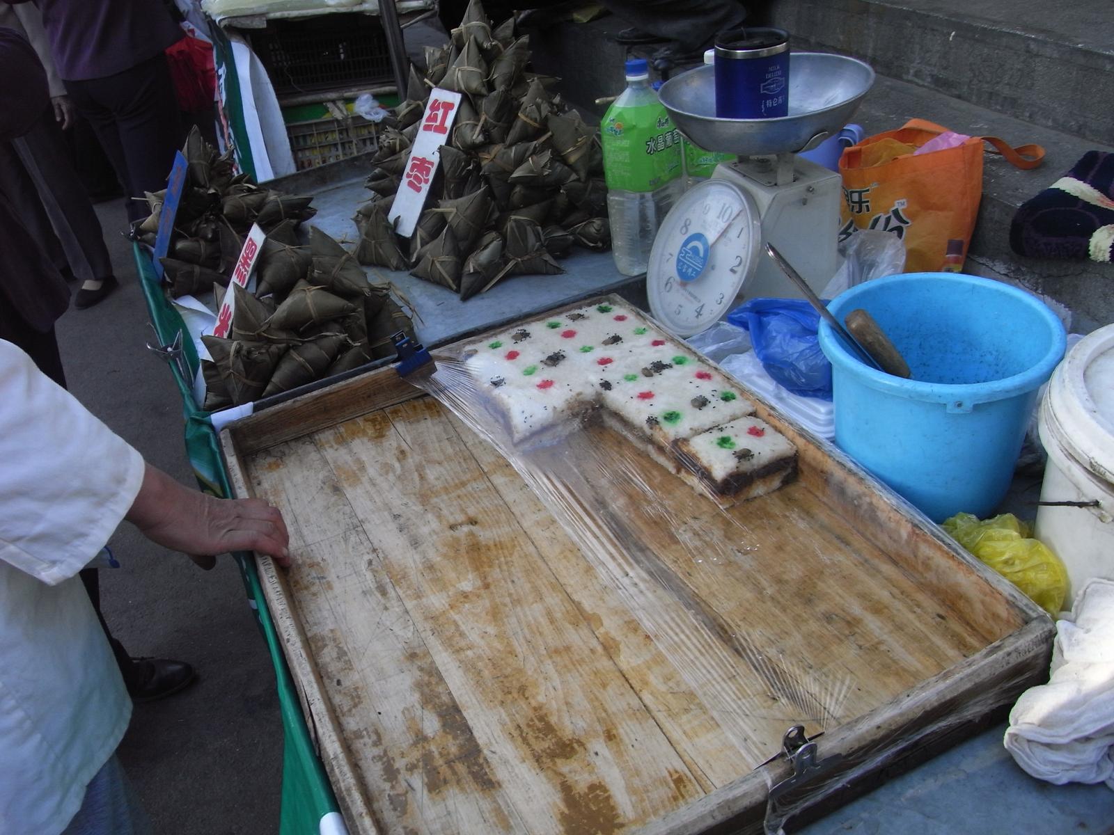 (粽屋さんです。赤ナツメや干しブドウ等が入ったものを売っています。)
