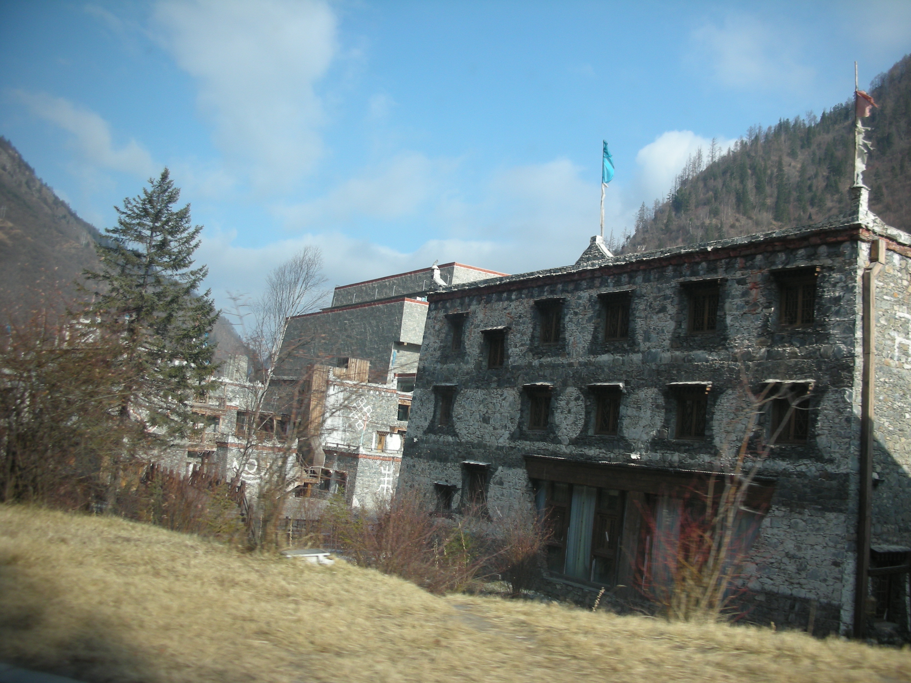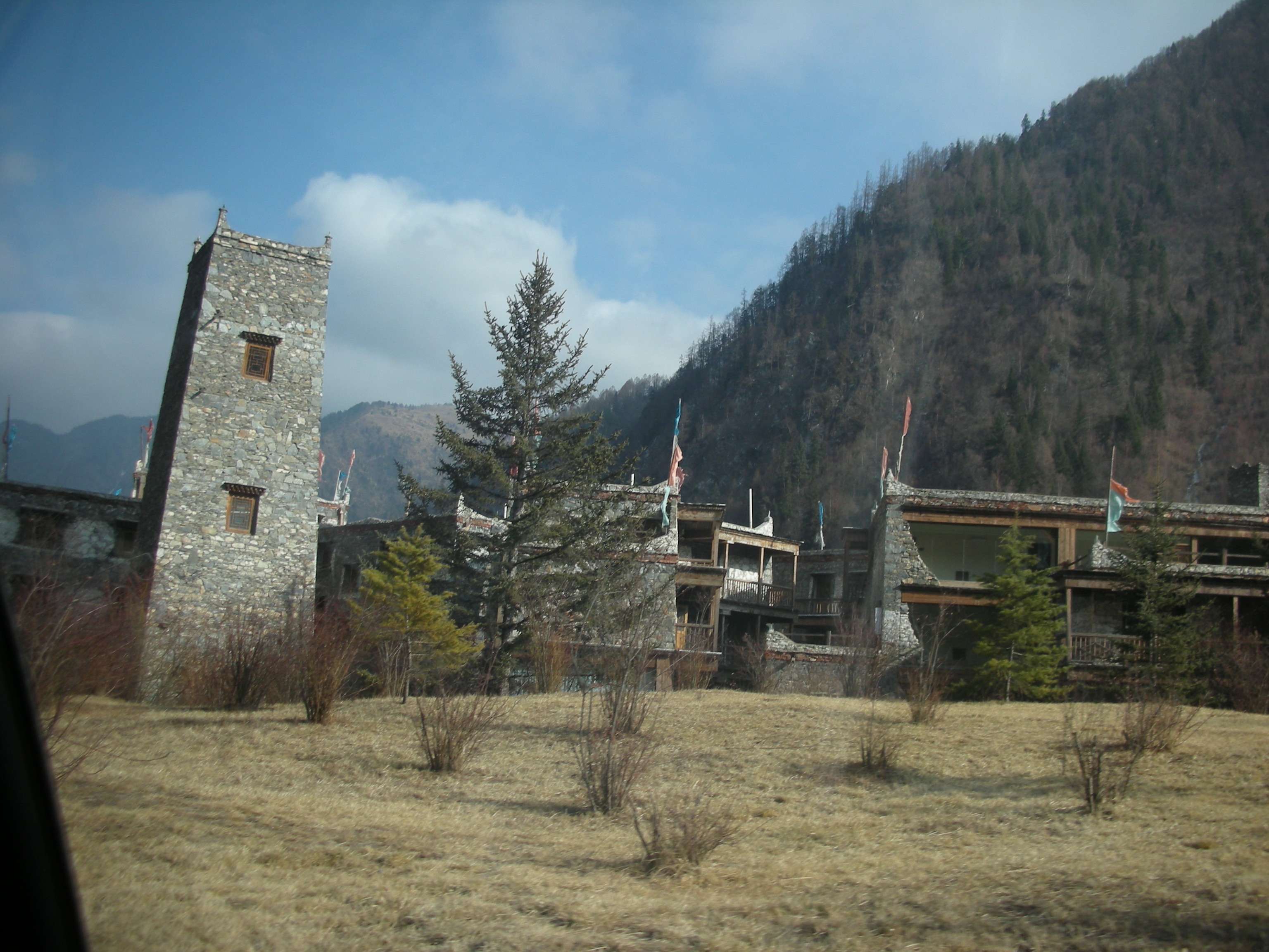 (今度は石造りのチャン族(羌族)の集落が見えてきました。)