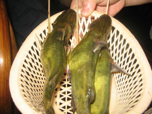 (川のグルメ王こと、文さんもたまらずお茶を飲みながら食べてます。)