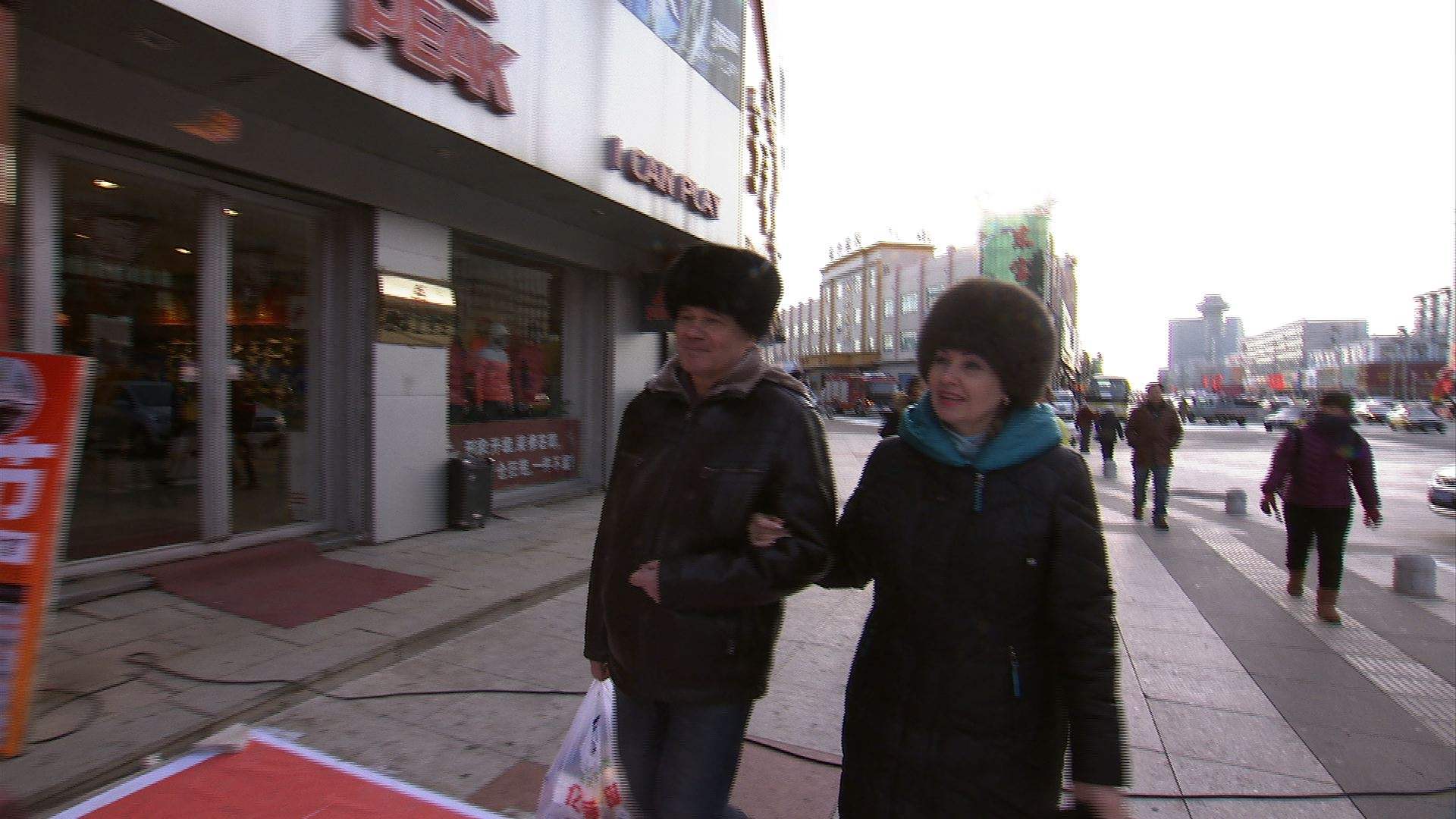 (琿春の街を歩くロシア人。)