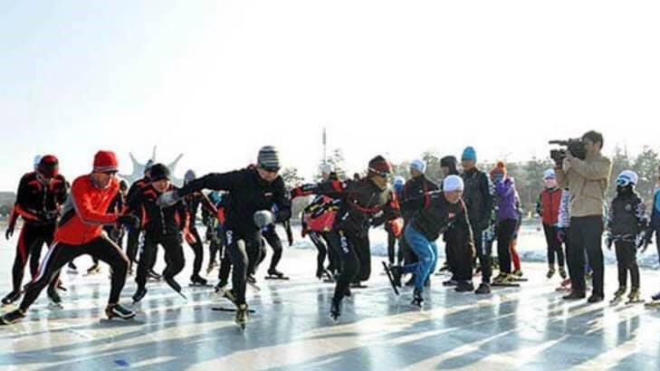 (琿春で開催されるアイススケート大会。)