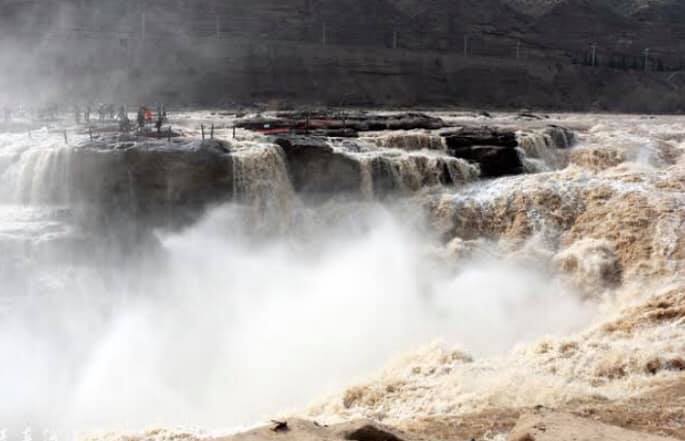 今日は山西省にある黄河最大の滝、黄河壺口瀑布について紹介いたします。ここは川幅が300m以上もあったのが、わずか50mほどに狭まり、落差約30mの滝となって落ち込んだ場所です。この場所は河の流れが壺みたいな形状をしていることから「壺口」と呼ばれ、滝と合わせて黄河壺口瀑布と呼ばれるようになりました。